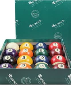 Aunque menos resistente al desgaste que las bolas de billar Super Aramith, las bolas de billar Aramith Premium todavía ofrecen una vida útil hasta 5 veces más larga que otros materiales. Cada bola de billar se controla en 7 criterios: densidad, equilibrio, tolerancia de diámetro, esfericidad, color, pulido de superficie y brillo. Todos los números están grabados con especificaciones muy estrictas.