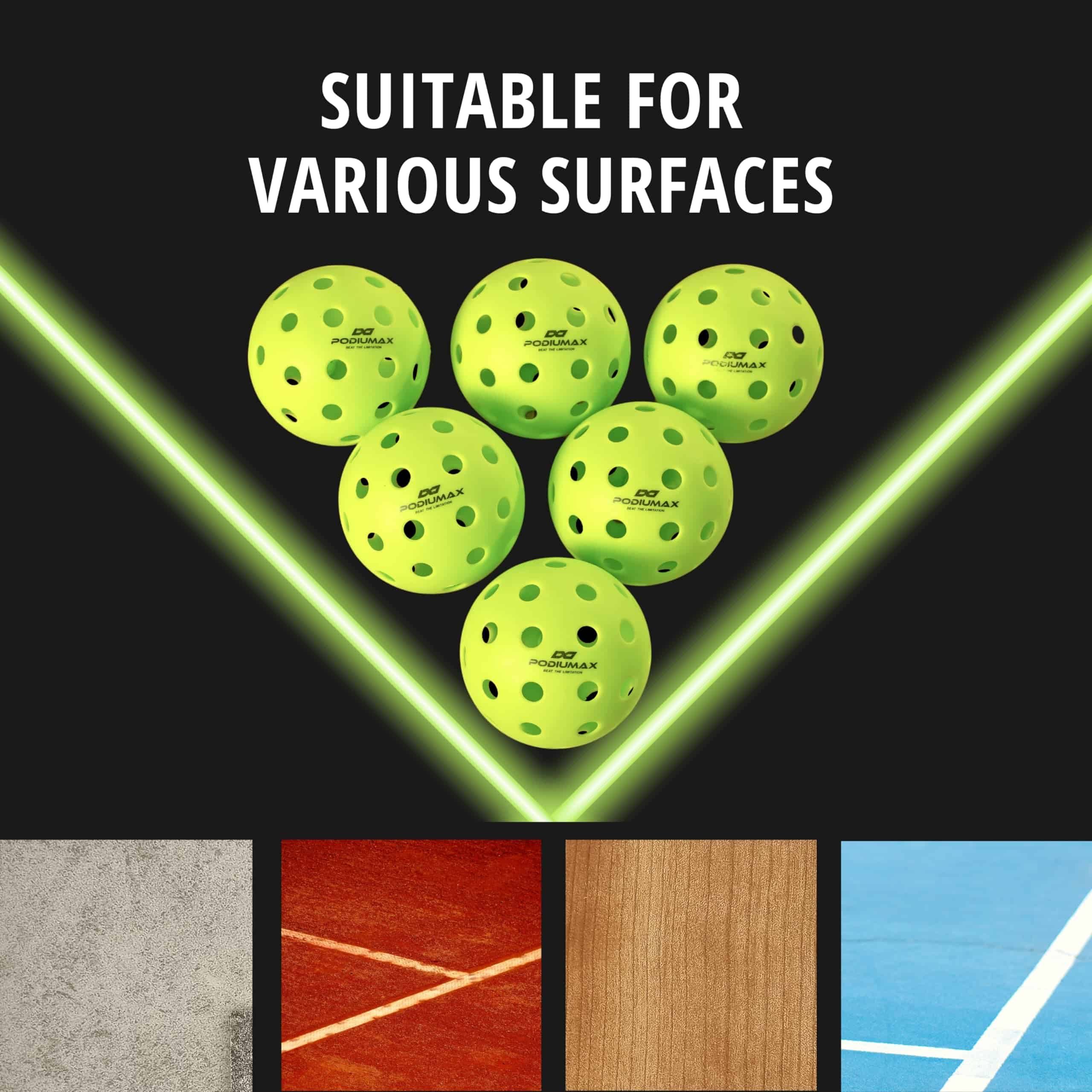 3. GRAN RENDIMIENTO – Las bolas de pickleball de PodiuMax cuentan con un diseño moldeado integrado con superficies perforadas de precisión y lisas, proporcionando un contacto sólido y un vuelo estable para un uso sostenido.