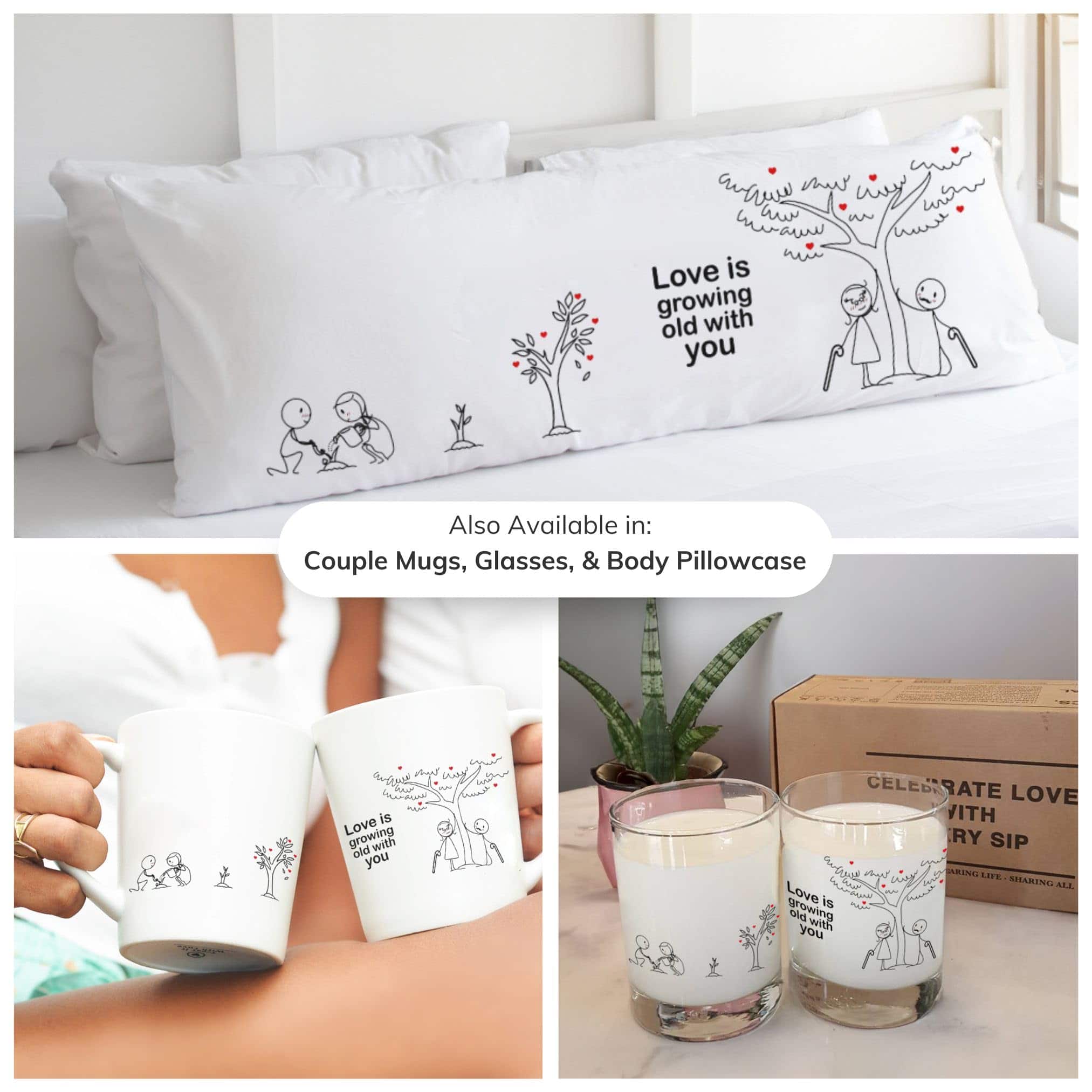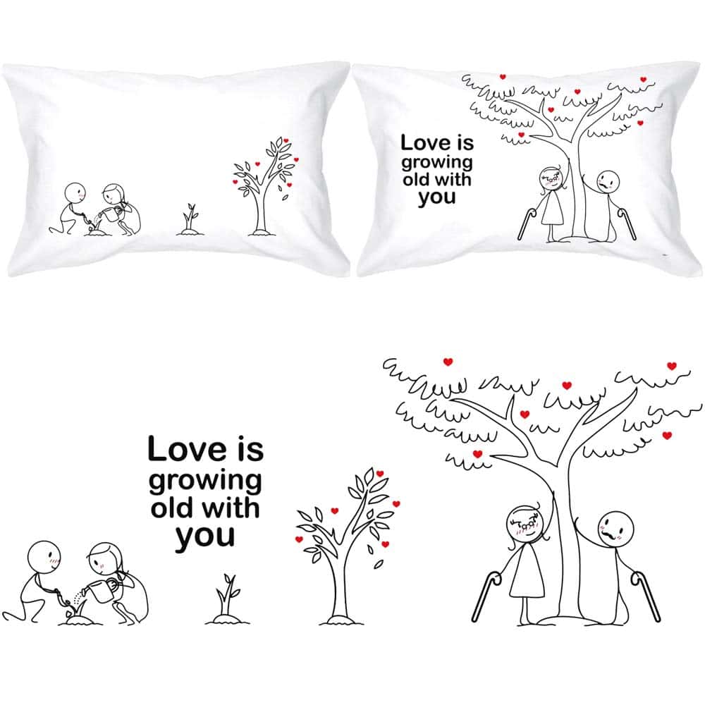 BoldLoft Grow Old with You Fundas de Almohada para Parejas son el regalo perfecto para celebrar el amor y la unión. Este set de 2 fundas de almohada de tamaño estándar está diseñado con frases de amor que expresan el compromiso y cariño entre parejas. Hechas de una mezcla de tela de algodón y poliéster, estas fundas de almohada son suaves al tacto y duraderas. El cierre de sobre mantiene la almohada en su lugar y se ajusta a la mayoría de las almohadas estándar.