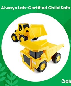 Tu hijo tendrá horas interminables de diversión con el Set de Camiones de Construcción. Incluye un juguete de camión volquete jumbo y un juguete de bulldozer. Déjalos sumergirse en una zona de construcción alternando entre cavar como conductor de bulldozer y transportarse en un potente camión volquete. Este conjunto de camiones de construcción de plástico es impresionante al tacto y muy resistente. Todos los juguetes de Boley están hechos con el mejor plástico y han pasado por rigurosas pruebas extremas, lo que hace que este producto no solo sea seguro sino que dure horas de juego brusco. Los juguetes que vendemos cumplen con todas las leyes de seguridad de EE. UU., ¡pues queremos asegurarnos de que los niños que usan nuestros juguetes estén seguros!