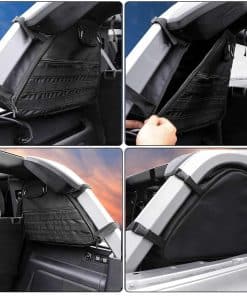 3. No se necesitan herramientas para ensamblar esta bolsa de almacenamiento de barra de rodillo, que cuenta con correas ajustables. Es un paquete de almacenamiento polivalente crucial al salir de excursión o de camping, ya que puede ser utilizado como una sola correa o instalado en el coche. Se adapta perfectamente y funciona bien, y transforma por completo el aspecto de su coche.