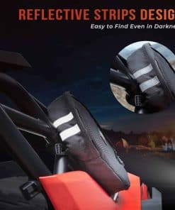 4. Diseño con tiras reflectantes para mayor visibilidad: Con 4 tiras reflectantes en la superficie de la parte trasera de la bolsa de almacenamiento de correa, esta bolsa de Kemimoto garantiza que la posición de la bolsa sea fácilmente visible, incluso en condiciones de poca luz o en la oscuridad. Esta característica adicional mejora la seguridad y la visibilidad de tu UTV cuando llevas almacenada la correa de transmisión CVT de repuesto.