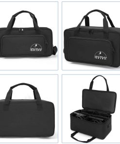 Bolsa de almacenamiento ideal para transportar y proteger hasta 4 focos Par de forma segura. Cuenta con un diseño de gran capacidad con divisores acolchados que se pueden quitar, y una capa de almacenamiento adicional en el exterior para cables y accesorios pequeños. El tamaño compacto y las correas ajustables permiten transportar fácilmente los focos. Fabricada con Oxford de alta calidad y resistente al agua, garantizando durabilidad. Incluye una garantía de satisfacción al cliente para reemplazar cualquier producto con problemas de calidad. ¡Disfruta de una vida feliz con los productos IBVIVIC!