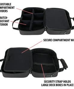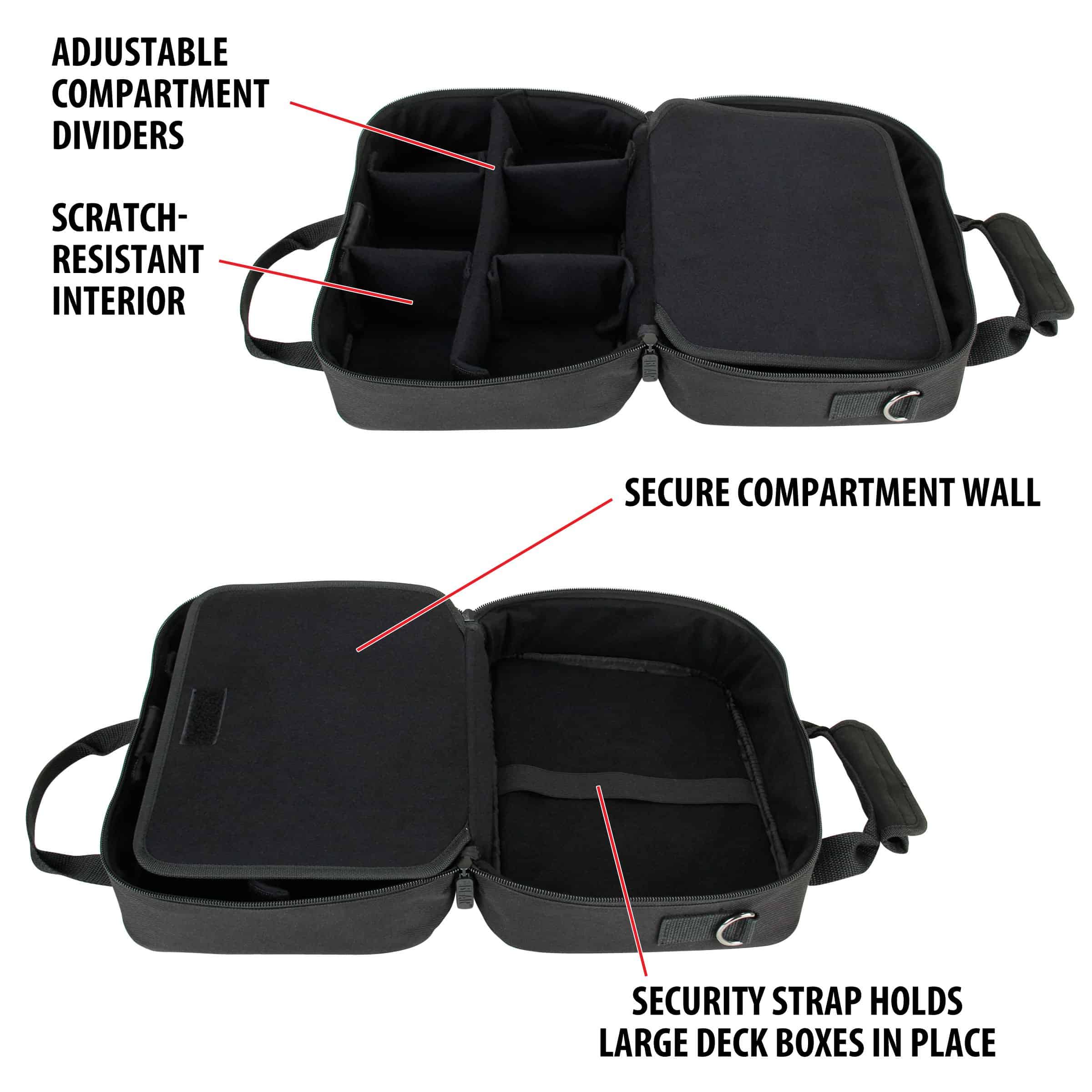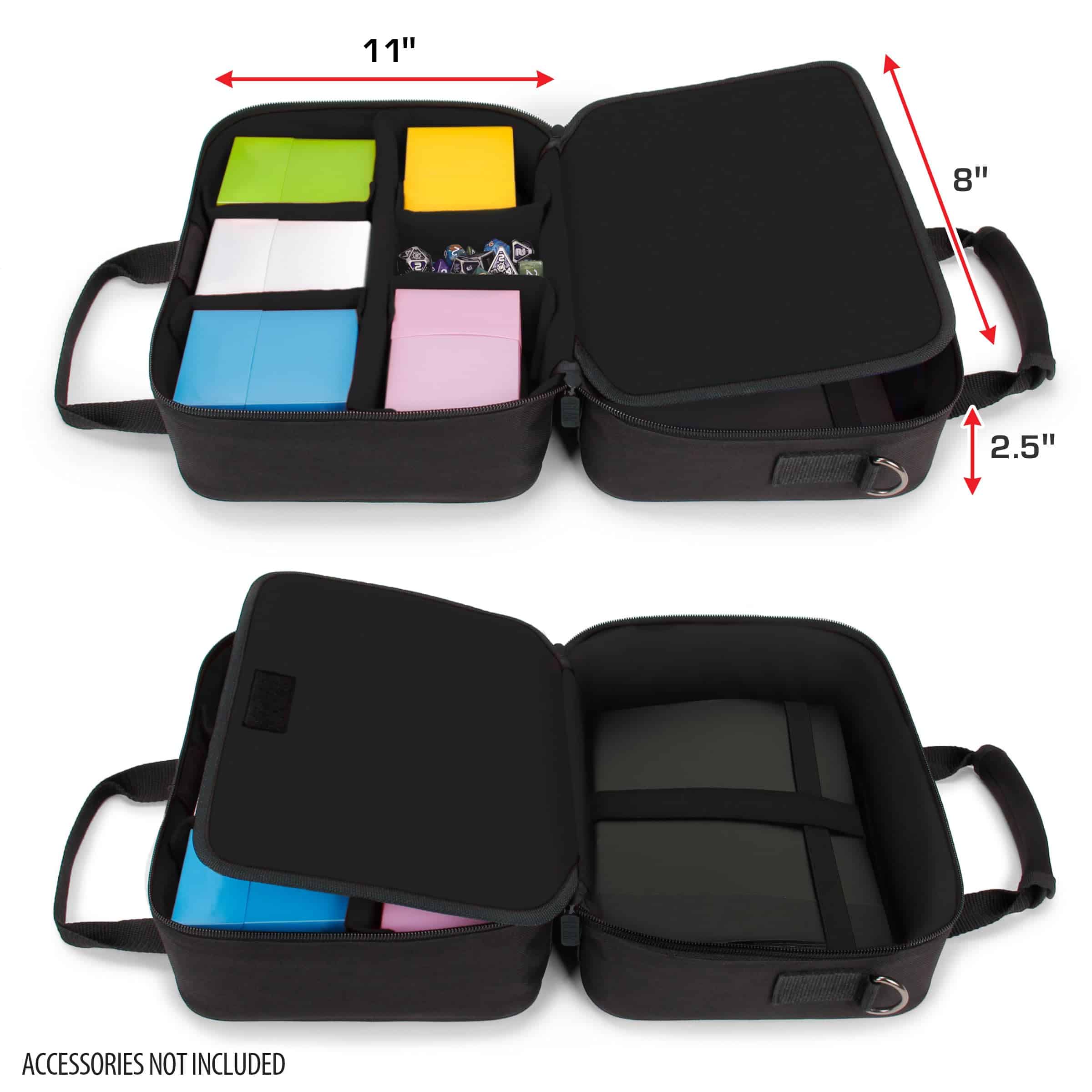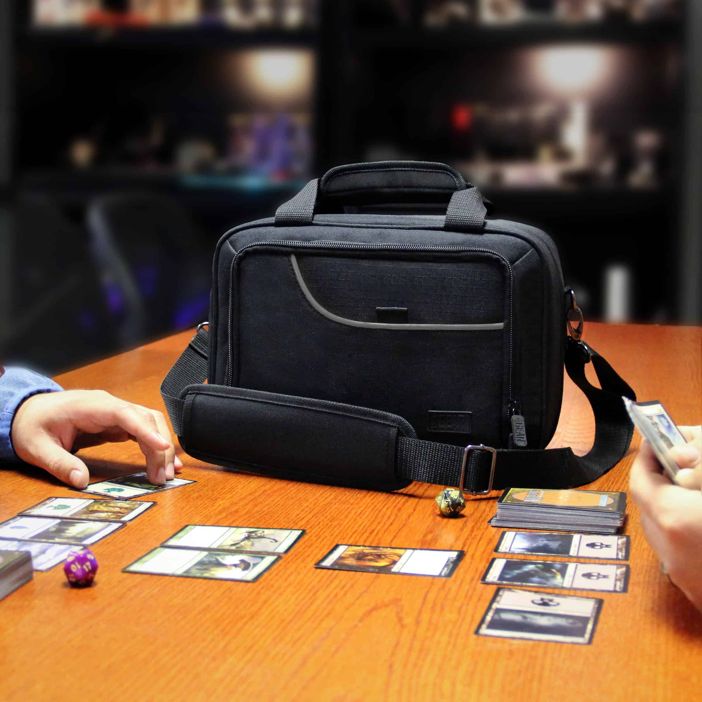 Bolsa de Mazo de Cartas Magic the Gathering de USA GearLleva tus mejores mazos contigo a tu próxima noche de juegos o torneo con la Bolsa de Viaje MTG de USA Gear. El espacioso interior con separadores personalizables te permite crear compartimentos de tamaño personalizado para todas tus cartas, dados, fichas, contadores, blocs de notas, bolígrafos y más. Dividido en dos compartimentos, el lado más grande se puede usar para asegurar firmemente dos cajas de almacenamiento MTG para una máxima organización. Una base resistente a la intemperie y un exterior de nylon fuertemente tejido proporcionan la máxima protección contra la lluvia y la humedad. El interior está forrado con un material suave resistente a los arañazos para proteger tus cartas del daño abrasivo y cuenta con una correa ajustable acolchada para el hombro y un resistente asa de transporte seguro. Portátil, espacioso y personalizable, la elección es clara con USA Gear.