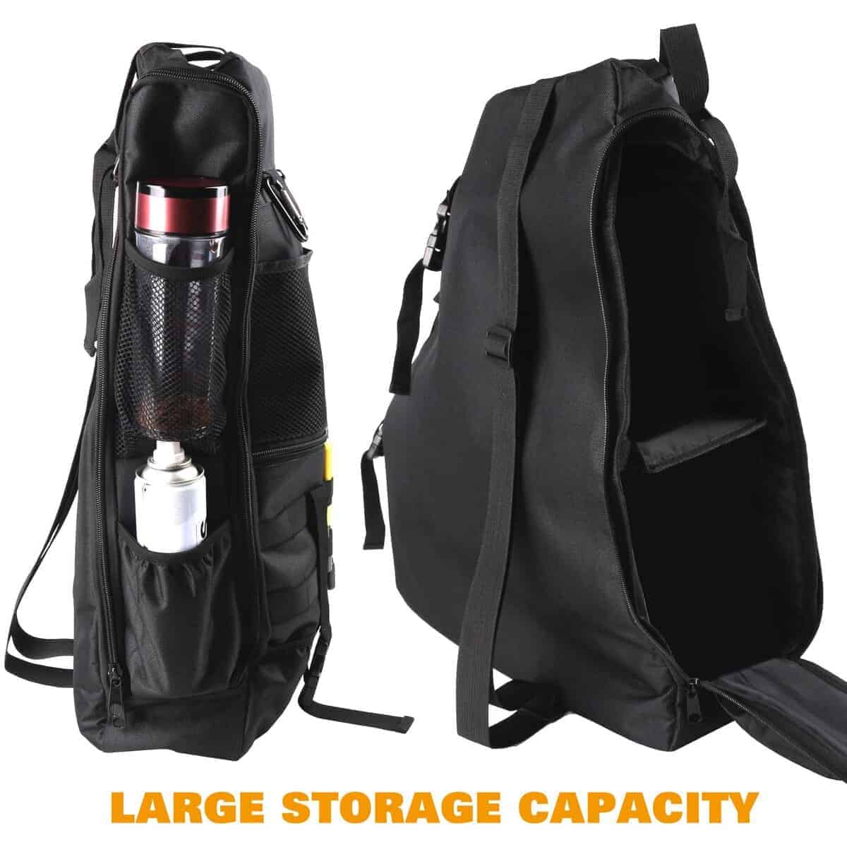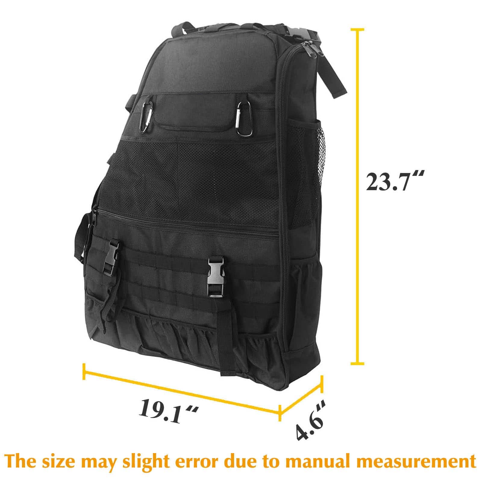 2. MATERIAL DURADERO Bolsa de Carga Trasera Multi-bolsillos hecha de tela Oxford 600D impermeable premium, liviana, resistente, robusta, resistente al desgaste y de largo uso.