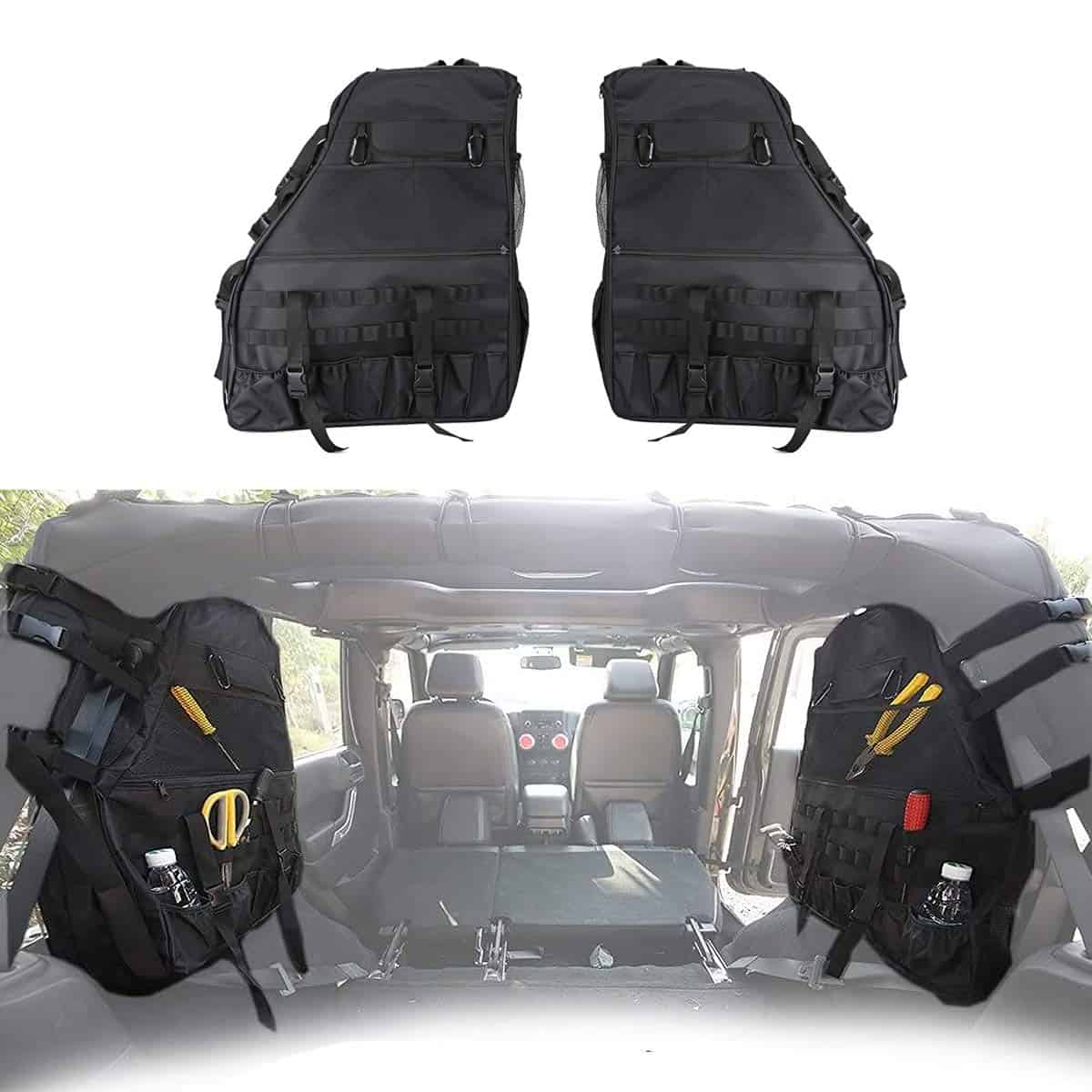 1. La bolsa de almacenamiento para barra de rodillo hace exactamente lo que dice; se adhiere a las barras de rodillo en el Jeep Wrangler, o cualquier otro espacio vacío, simplemente enganchándose con las hebillas de liberación rápida.