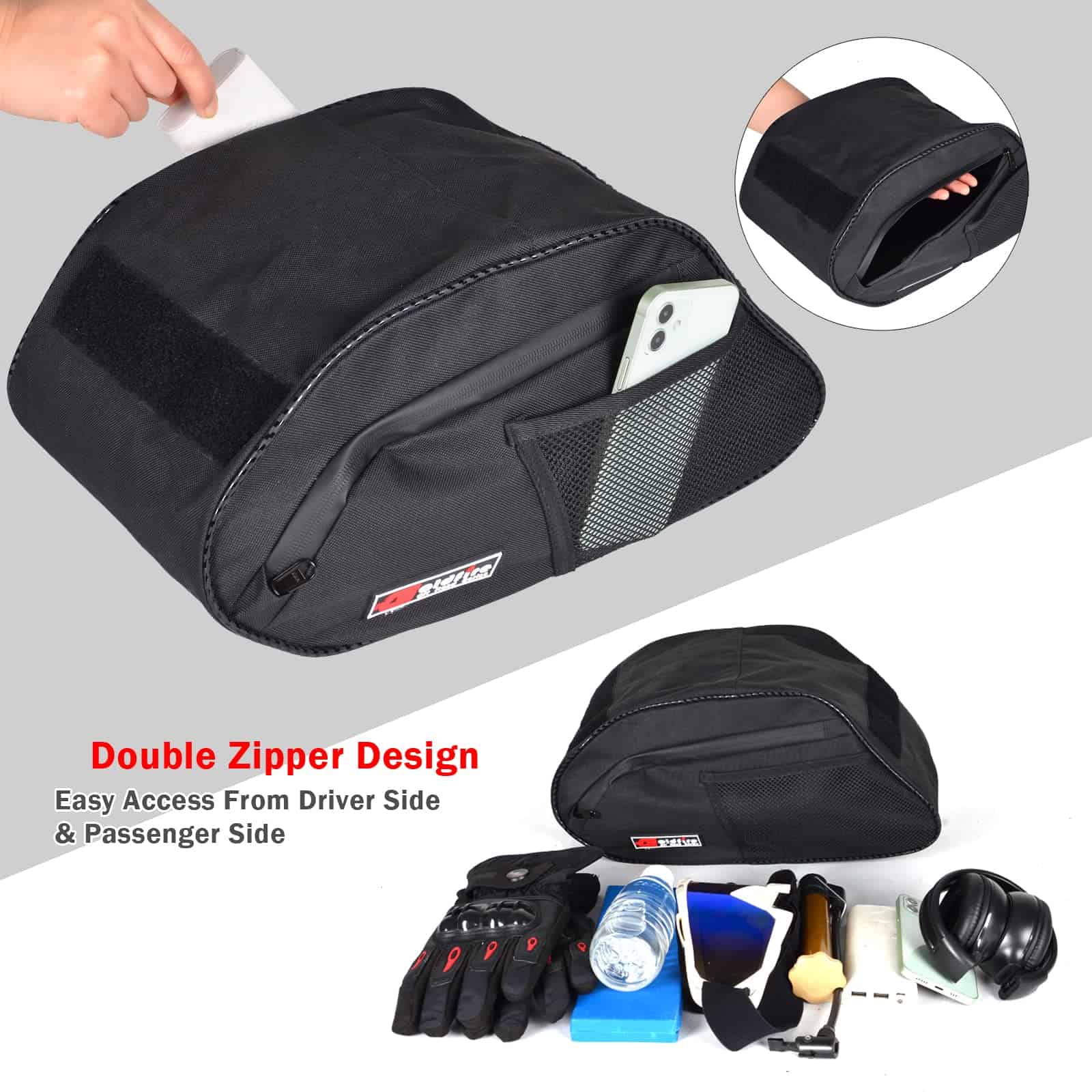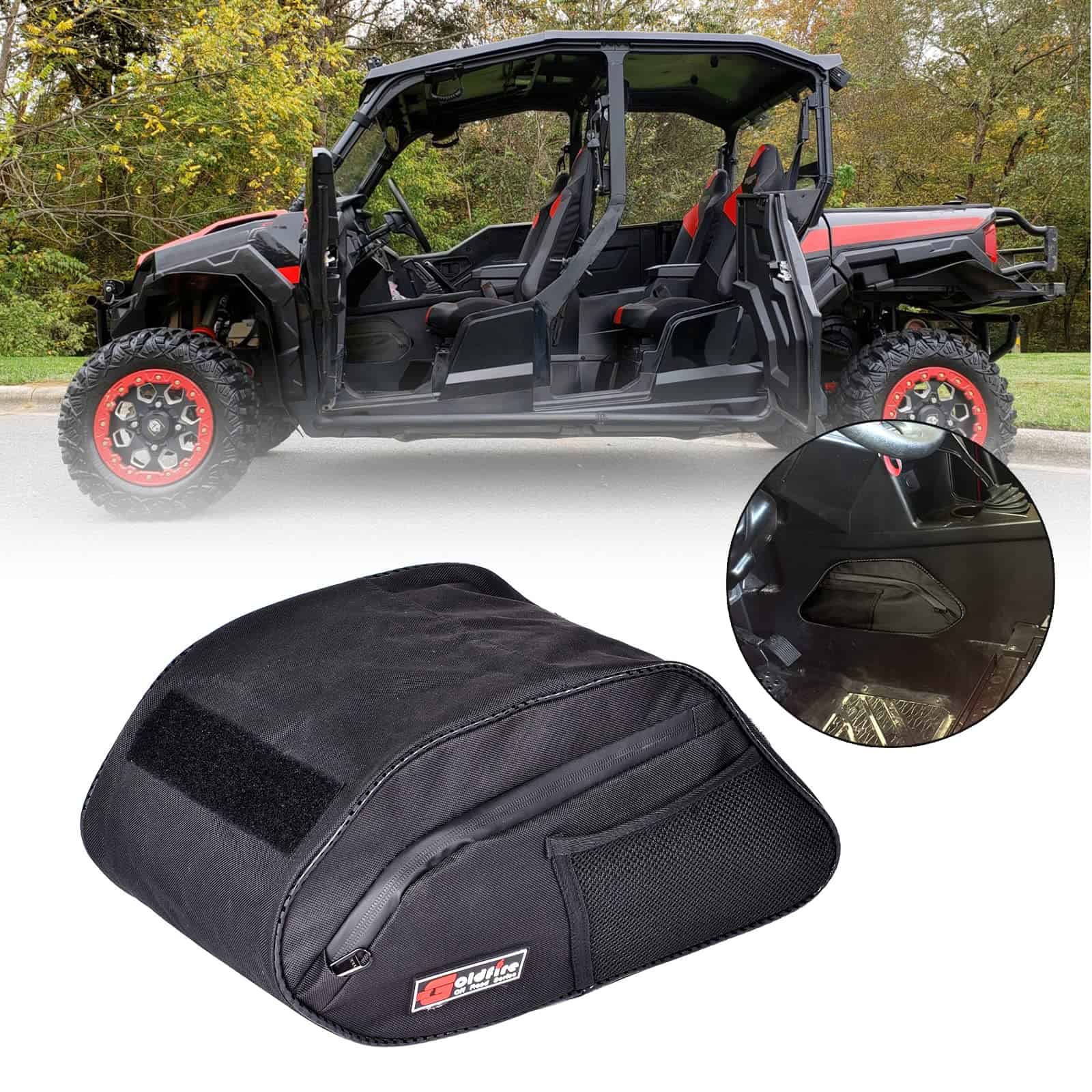 La bolsa de almacenamiento para consola central Goldfire Cab Pak está diseñada para adaptarse perfectamente a tu Polaris General 1000/General 4 1000 fabricada entre 2016 y 2020. Se instala en el área abierta inferior de la consola central bajo el tablero. Fabricada con materiales de tela 1680D, es resistente al agua, al desgaste y al polvo. Además, las cremalleras impermeables protegen tus artículos de la suciedad y los escombros para mantenerlos limpios y secos. Con la bolsa de almacenamiento Goldfire General Console, convierte el espacio desperdiciado en espacio útil. Además de proporcionar almacenamiento necesario para tu Polaris General, incluye 2 pequeñas bolsas de malla para tu celular, tarjetas y llaves. Los bolsillos de acceso rápido en ambos lados te permiten almacenar y acceder fácilmente a artículos comunes. La instalación es súper fácil y no requiere perforar, simplemente fíjala con las cintas adhesivas en la consola central del tablero.