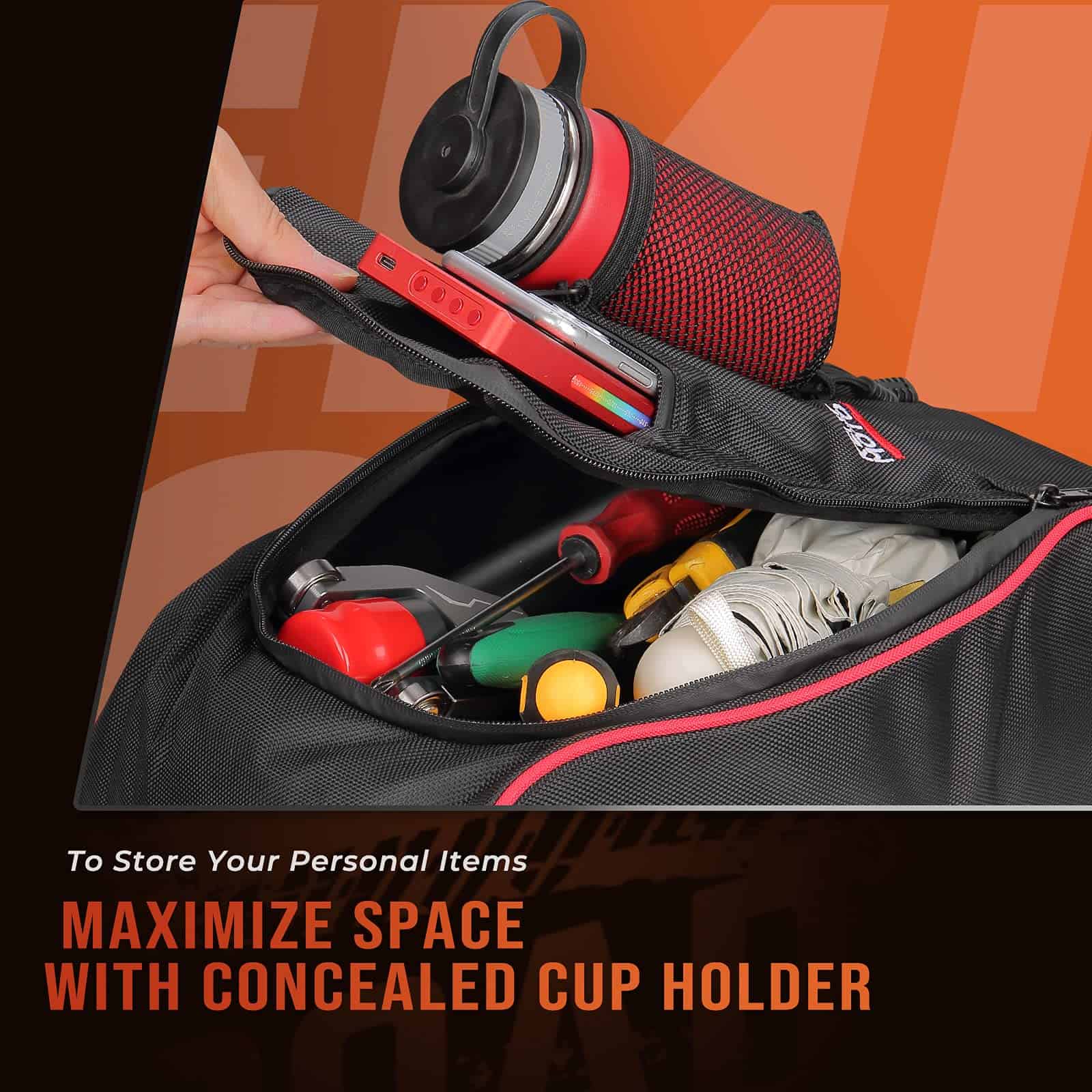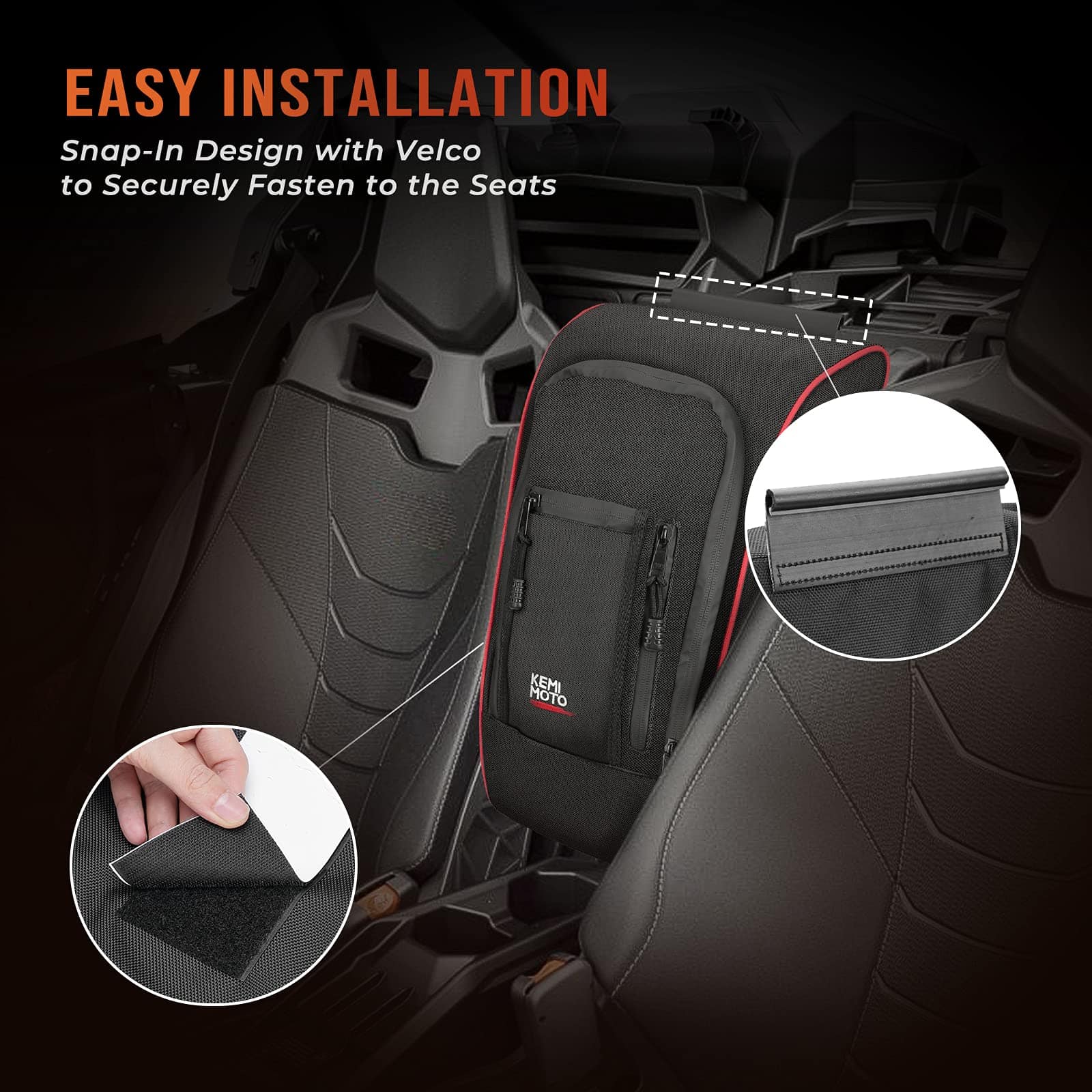 5. Instalación fácil: Las bolsas de almacenamiento central de Kemimoto X3 están diseñadas para montarse fácil y seguramente directamente en los asientos a través de ganchos sin necesidad de perforar.