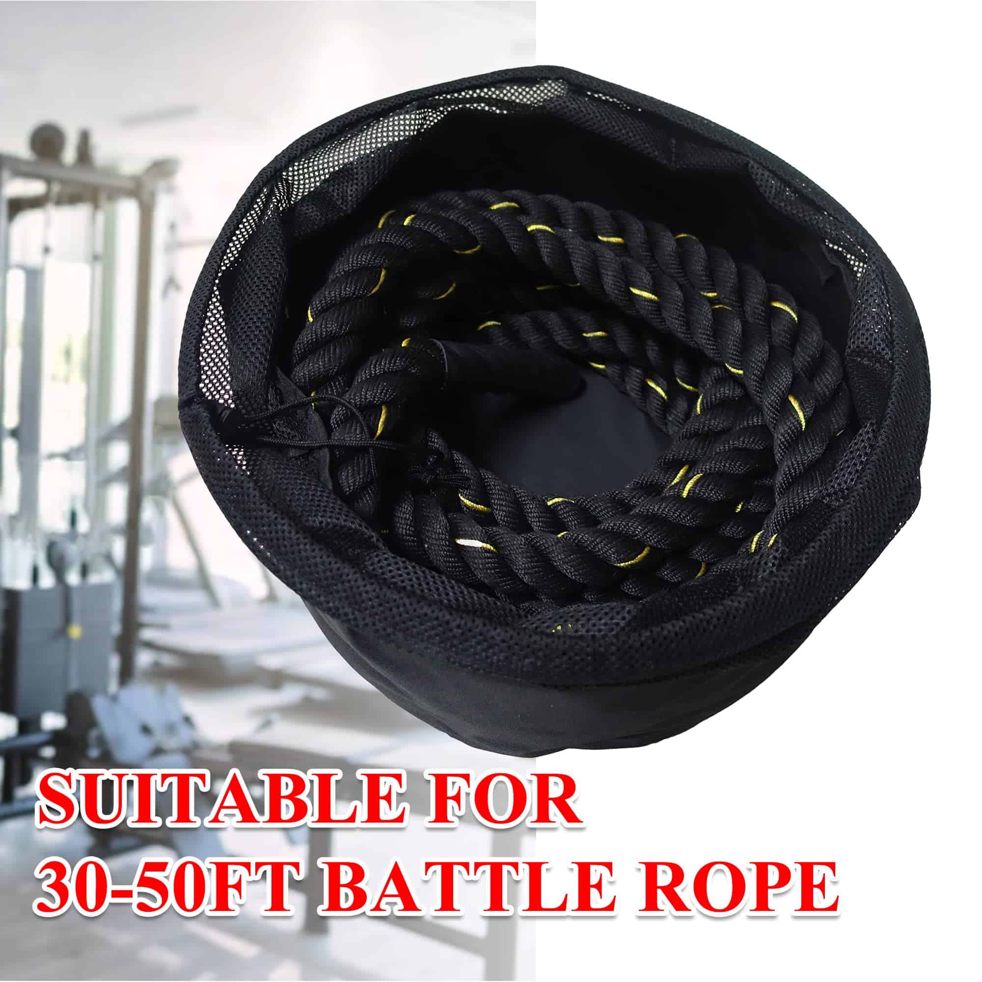 Nuestra bolsa de almacenamiento está hecha de material de poliéster oxford con malla transpirable en la parte superior, que es transpirable y fácil de almacenar. Extenderá el tiempo de uso de la cuerda de batalla. La parte superior está diseñada con un cordón, fácil de sacar la cuerda de batalla y fácil de llevar y almacenar. Adecuado para almacenamiento en el gimnasio en casa o para llevar al aire libre para entrenamiento con cuerda de batalla, una buena elección para el entrenamiento con cuerda de batalla.