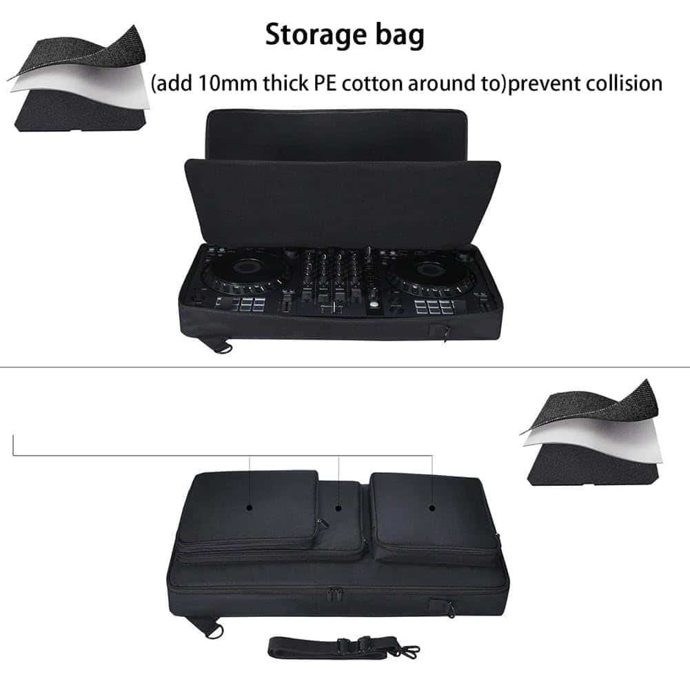 1. Modelo aplicable: Estuche de almacenamiento para controlador DJ compatible con Pioneer DDJ-FLX6/DDJ-SX/DDJ-SX2/DDJ-SX3, ¡solo la bolsa!. 2. Material: La bolsa para mezclador DJ está hecha de tela de poliéster de alta calidad + algodón PE, y el interior es de material de franela, la capa exterior está hecha de tela resistente al desgaste y la capa interna está hecha de tela antirrayones, lo que mejora la protección del controlador DJ. 3. Almacenamiento: Dos bolsillos con cierre en la parte delantera para guardar auriculares y otros accesorios y almacenar objetos pequeños. 4. Correas Ajustables para el Hombro: La bolsa de almacenamiento está equipada con una correa ajustable para el hombro y se puede llevar de dos maneras, ya sea en el hombro o al hombro. 5. Llévalo Contigo: Cuando estés en movimiento, puedes usar esta bolsa para almacenar tu controlador DJ para facilitar la portabilidad.