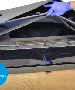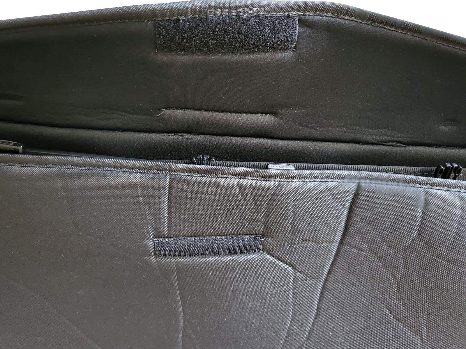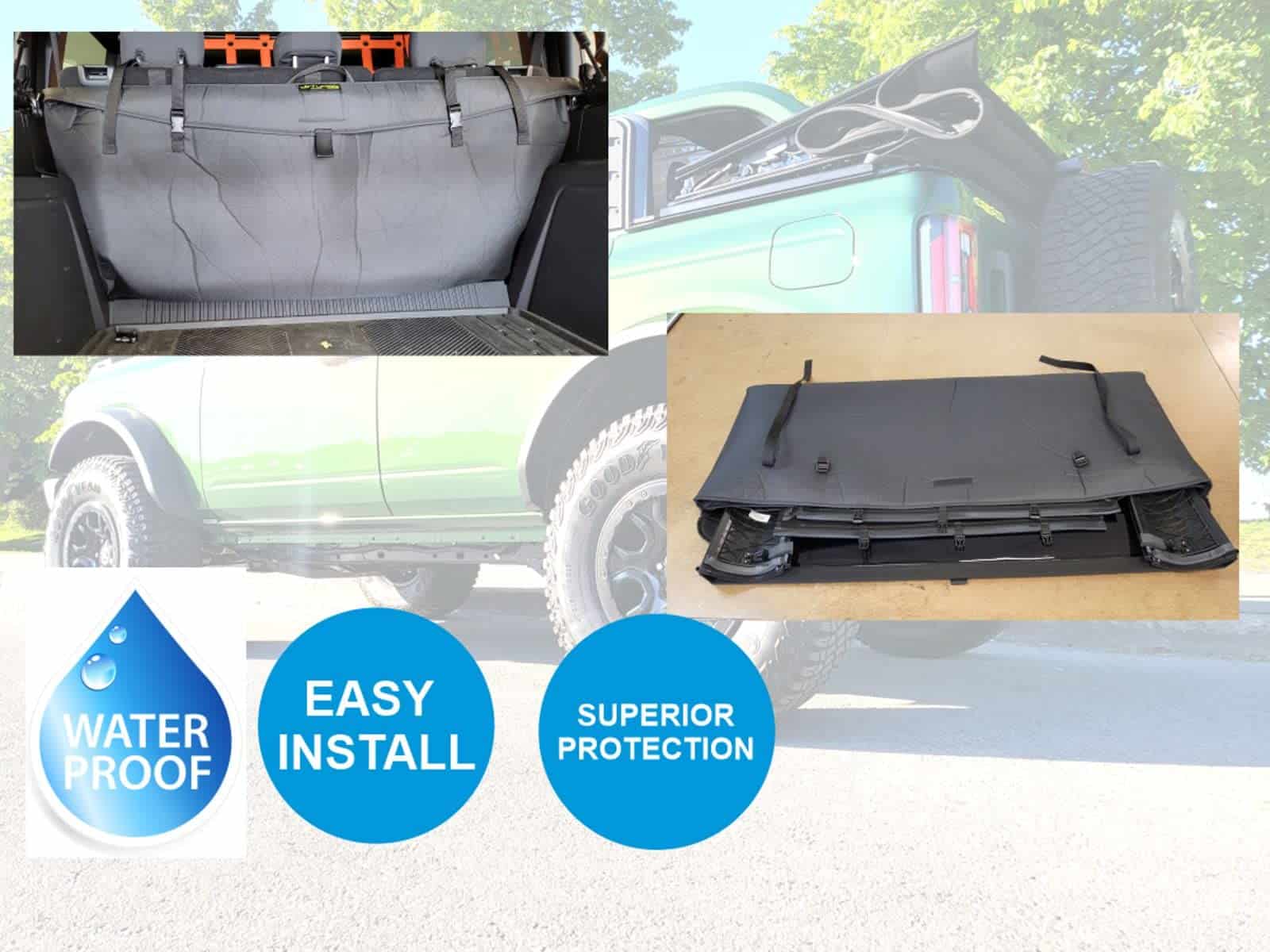 Bolsa de almacenamiento para ventanas de toldo suave Dirtydog 4×4, diseñada para adaptarse a Ford Bronco de 4 puertas y 2 puertas de los modelos 2021 y 2022. Este accesorio cuenta con un exterior acolchado de espuma con un forro suave que protege las ventanas de daños durante su almacenamiento. Cuenta con 3 compartimentos individuales para evitar arañazos y un cierre de gancho y lazo para facilitar el acceso. La tela exterior es impermeable para mayor protección. Además, tiene hebillas de liberación rápida que permiten montar y soltar la bolsa del interior con facilidad. Su diseño de ahorro de espacio permite que la bolsa se pueda almacenar en la misma posición cuando está vacía, ocupando muy poco espacio. La bolsa también incluye un asa de transporte fácil para mayor comodidad.