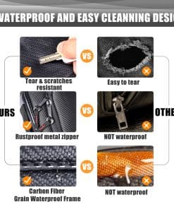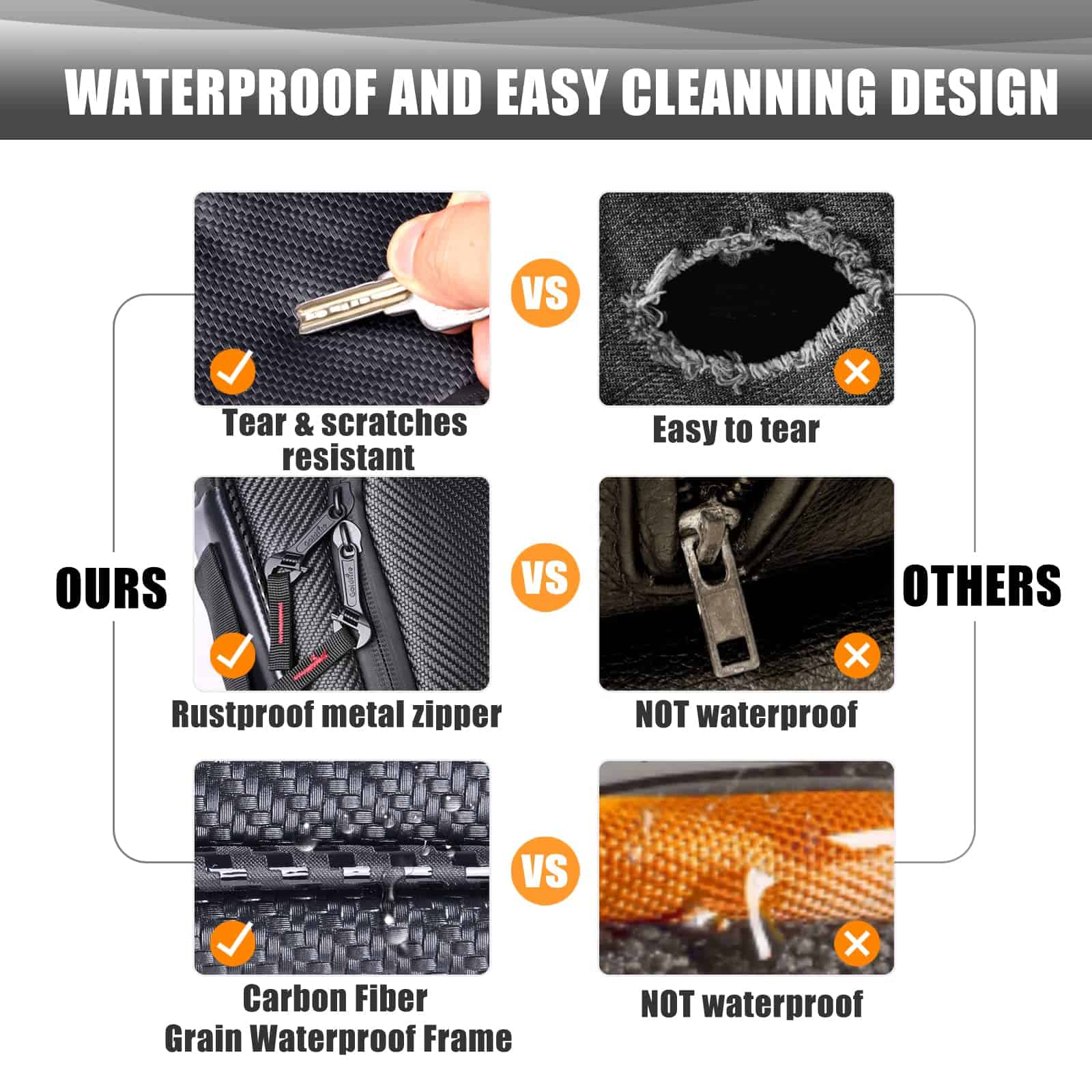 3. MATERIAL MEJORADO: Nuestra bolsa de almacenamiento para Can Am X3 está hecha de vinilo impermeable con diseño de fibra de carbono, lo que la hace más sólida y suave y tiene alta elongación y excelente resistencia al desgarro y mantiene el agua fuera. Además, en el interior de cada bolsa de almacenamiento X3 está incrustada una almohadilla de esponja suave y elástica de 6 mm de grosor para asegurar que los artículos en el interior estén seguros, e incluso si su cabeza golpea accidentalmente la bolsa de almacenamiento, puede prevenir efectivamente lesiones.