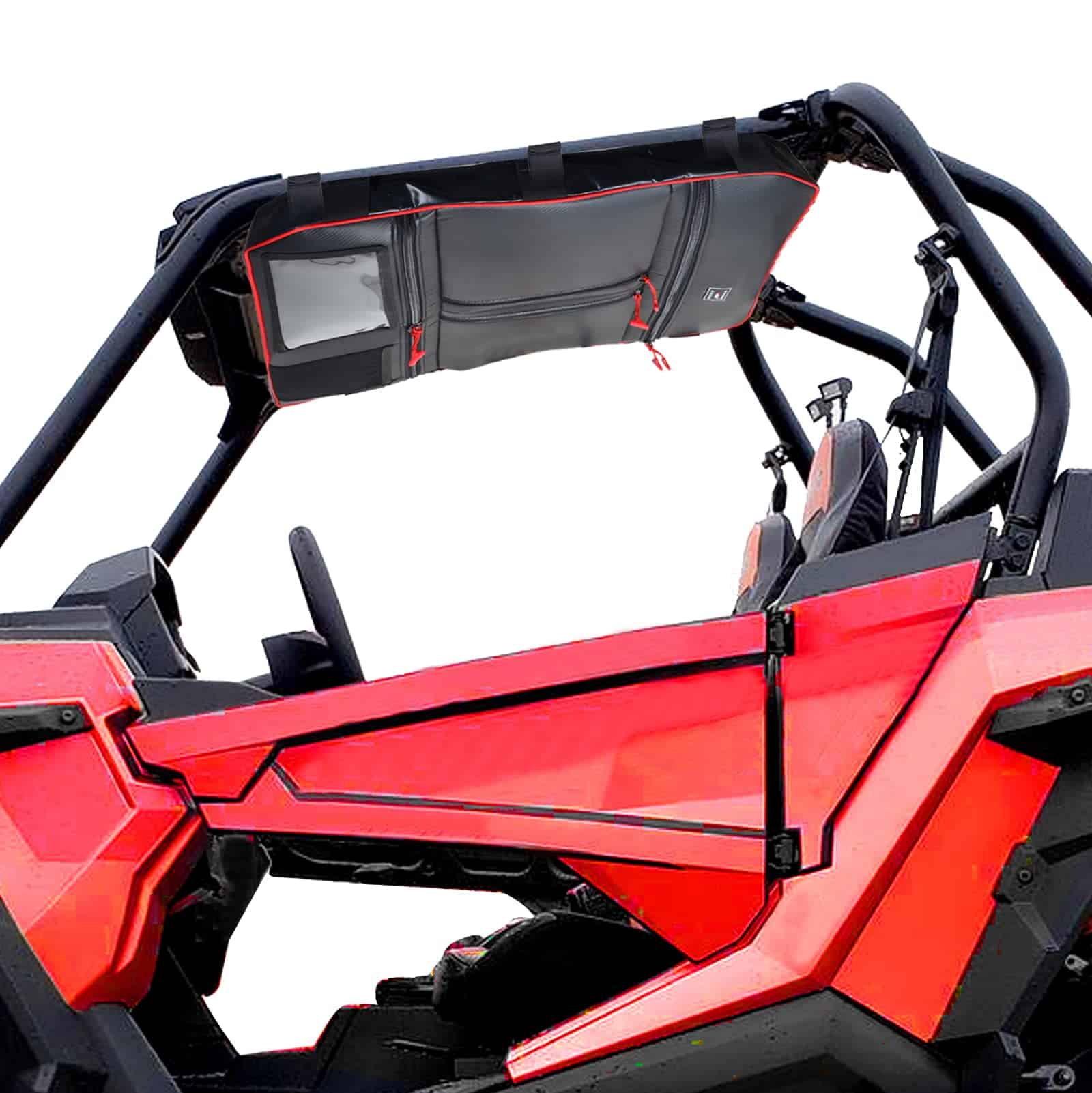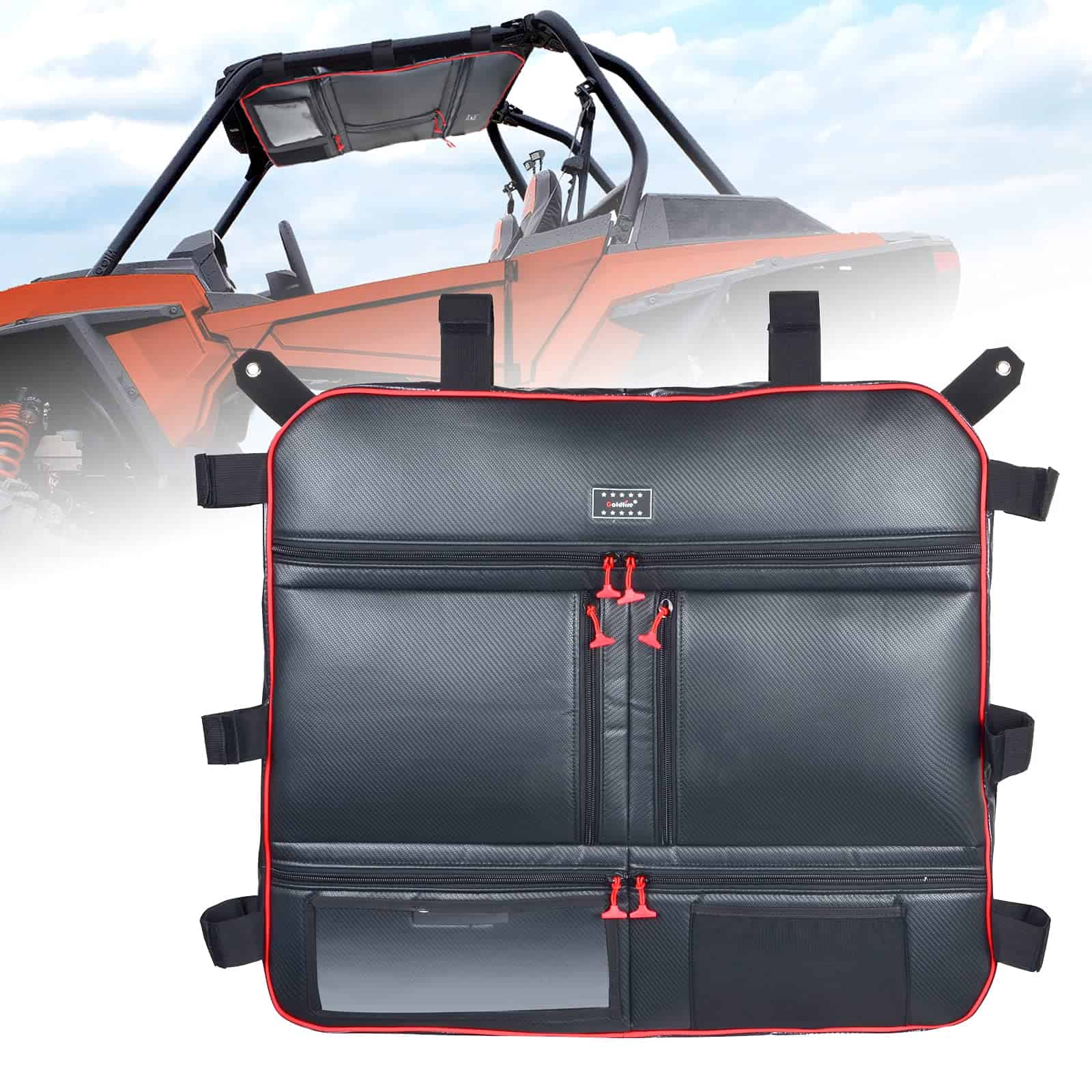 4. Multifuncional y gran capacidad: Esta bolsa superior solo es compatible con RZR XP. Bolsa de almacenamiento superior de gran capacidad con 5 compartimentos de almacenamiento para guardar diversos artículos, y uno de ellos es una bolsa de PVC transparente, en la que se puede colocar un mapa y otros artículos. Conveniente para que puedas revisar la ruta mientras conduces.