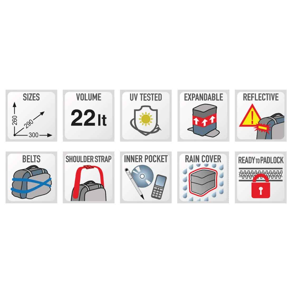 Bolsa trasera expandible termoformada, apta para motos deportivas, 22 L. Materiales (cumplen con las regulaciones Reach): Poliéster 1200D de alta resistencia / inserciones de PVC PU. EVA termoformada, recubierta con materiales PU resistentes a los arañazos. PRUEBA UV Otras características: Expandible hasta 26 litros. Inserciones exteriores reflectantes para una mayor visibilidad. Funda para la lluvia extraíble del bolsillo trasero. Bolsillos laterales y bolsillo interno de malla en la tapa. Asa de transporte ergonómica con inserciones de goma. Correa para el hombro acolchada. Se sujeta con 4 correas (incluidas)