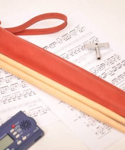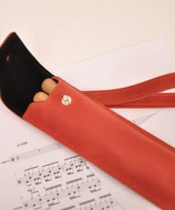 La bolsa de baquetas de cuero genuino de MG Leather Work combina una larga vida útil, una textura agradable y un diseño atractivo. Está diseñado para sostener dos baquetas y proporcionarles una protección completa. El cierre de botón cómodo permite acceder rápidamente a los accesorios. El cuero genuino agradable al tacto se ve elegante y único, y conserva sus propiedades incluso si se usa a diario. Debido a la variedad de colores, puedes elegir el porta baquetas de azul oscuro, marrón, verde, rojo y otros colores. Esta bolsa funcional y práctica es un excelente regalo para bateristas de cualquier nivel de habilidad, tanto para profesionales como para músicos aspirantes. Si deseas preparar un regalo útil para tu amigo que toca la batería, elige este!