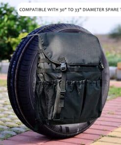 Esta bolsa de almacenamiento de rueda trasera tiene muchos usos, es una adición perfecta para añadir al equipo de exploración off-road de cualquier persona. Las personas con camiones, campistas, SUV, remolques y vehículos utilitarios siempre necesitan algo como una bolsa de llanta de repuesto para mantener su equipo pesado en su lugar y protegido del clima. Nuestra bolsa de rueda se adhiere a un camioneta, camper, remolque y más. Para SUV, una bolsa de rueda trasera es el lugar perfecto para llevar su leña a su campamento. Funcional y respetuoso con el medio ambiente, el uso de bolsas de almacenamiento de llantas le permite llevar su basura y repuestos con usted.