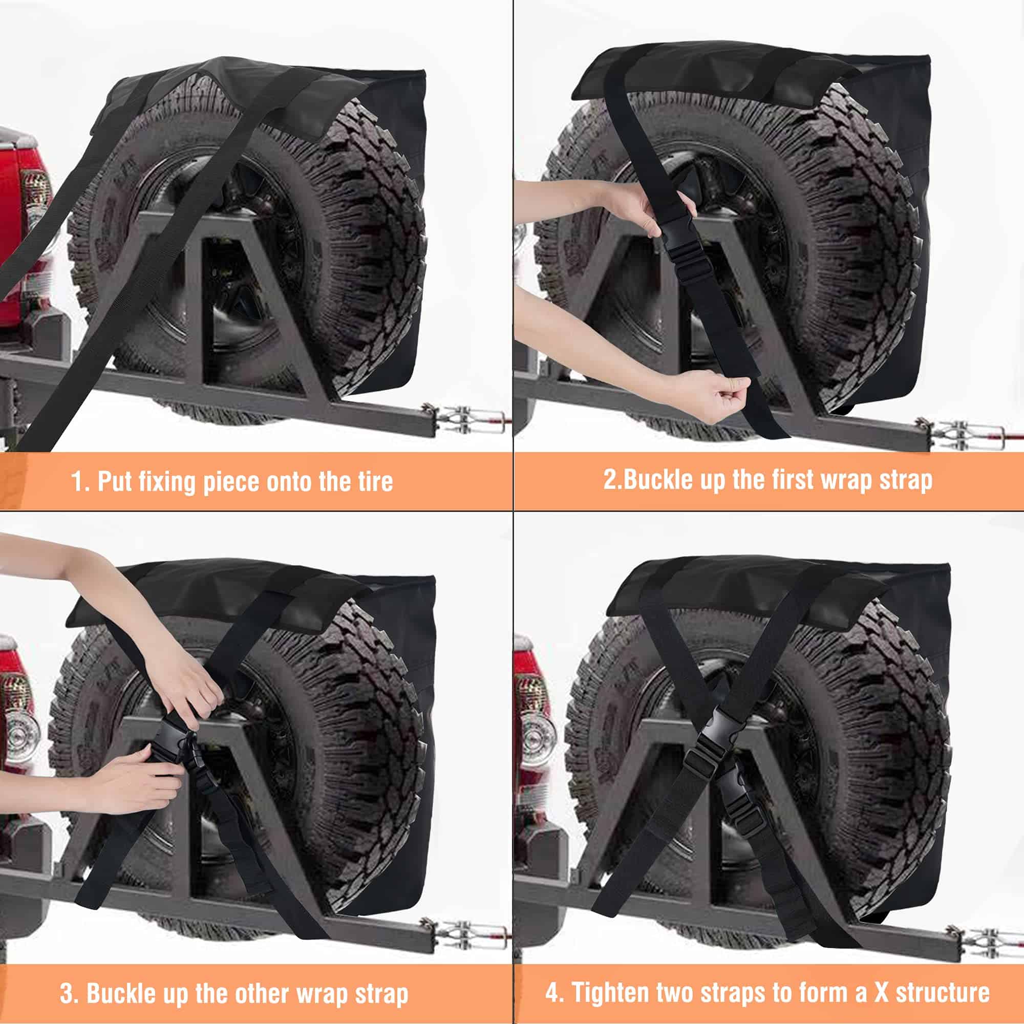 3. AJUSTE VARIOS: 2 correas de 6.6 pies x 2 pulgadas con hebilla resistente garantizan la compatibilidad con varios tamaños de neumáticos.
