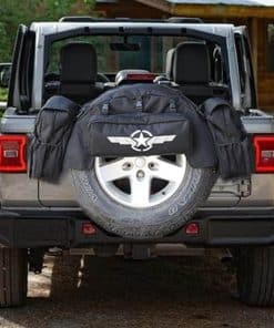 Cuatro piezas individuales, funcionan como una unidad (la base, más las tres bolsas de almacenamiento desmontables). Las bolsas se sujetan por separado, lo que les permite retirarse sin desmontar toda la unidad. La base se ancla de forma segura al neumático, lo que evita que las bolsas se pandeen cuando están cargadas. Resistente al agua, no es necesario preocuparse al conducir en días lluviosos. Fabricado con un material flexible duradero, resistente a los arañazos. No se deformará por el uso diario. Instalación fácil, abróchelo desde arriba hacia abajo, no necesita herramientas. Y dóblelo en cualquier momento. Tiene una fuerte contractilidad y no ocupa espacio. Esta bolsa de almacenamiento de rueda trasera tiene tantos usos, es una adición perfecta para agregar al equipo de exploración todoterreno de cualquier persona. Las personas con camiones, campistas, SUV, remolques y vehículos utilitarios siempre necesitan algo así como una bolsa de neumáticos de repuesto para mantener su equipo pesado en su lugar y protegido del clima. Nuestra bolsa de rueda se adhiere a una camioneta, un remolque y más. Para SUV, una bolsa de rueda trasera es el lugar perfecto para llevar su leña a su campamento. Funcional y respetuoso con el medio ambiente, el uso de bolsas de almacenamiento de neumáticos le permite llevar su basura y repuestos con usted. Para acampar, esta bolsa de basura es el lugar perfecto para llevar su leña y almacenar la basura en su campamento. Nota Se adapta a llantas de repuesto de 245/75R17 Material ABS + tela Oxford. Incluye 1 juego de bolsas