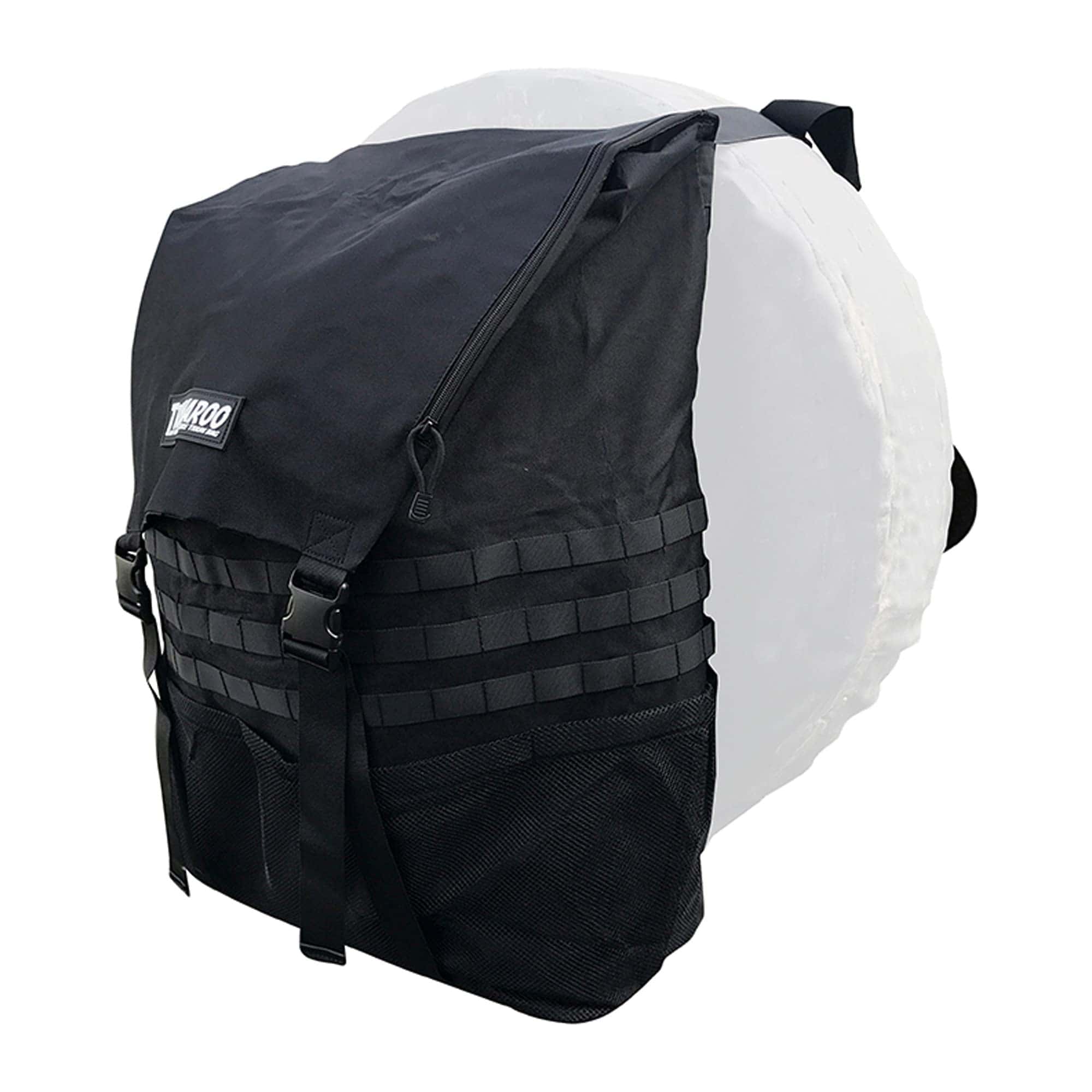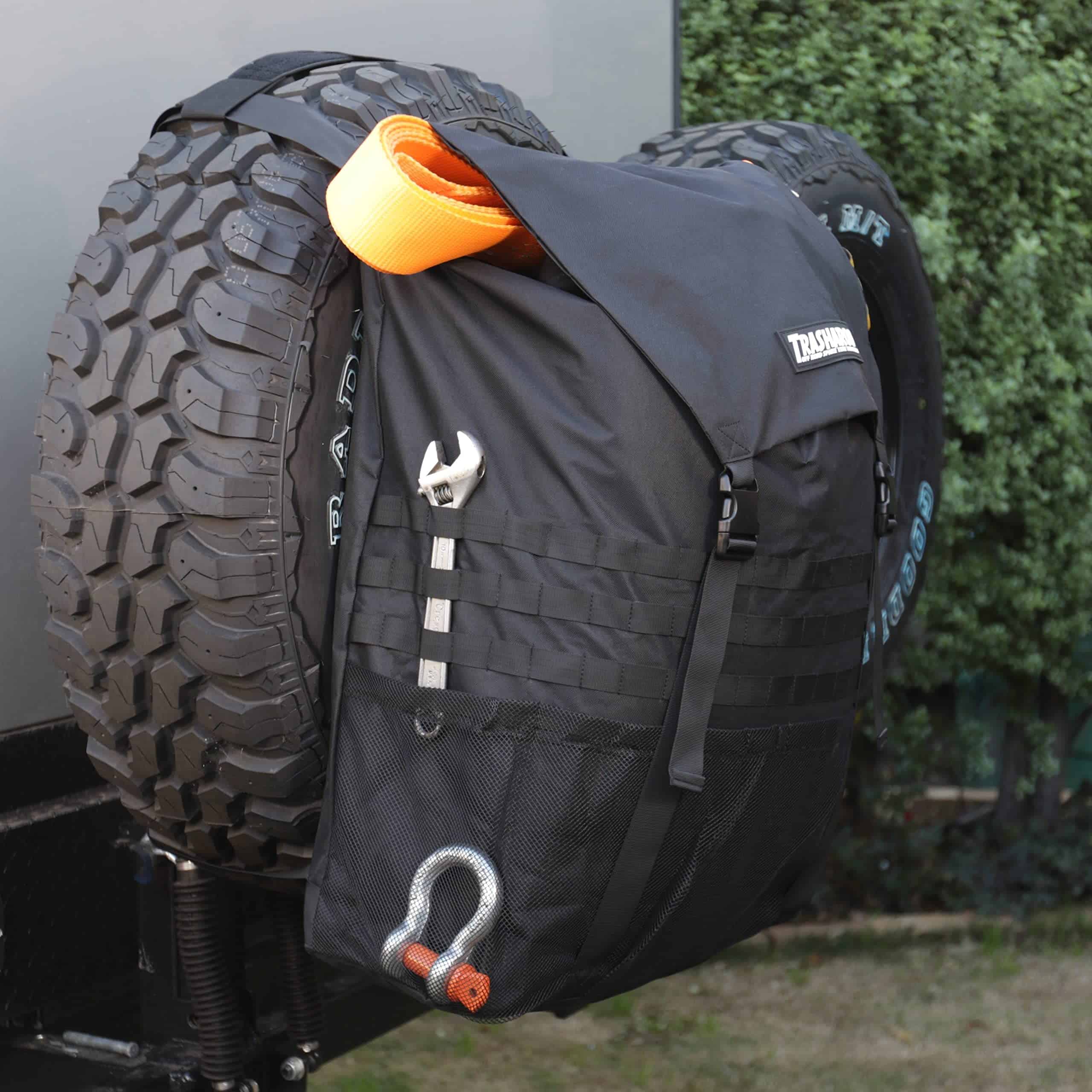 Bolsa de Basura para Llanta de Repuesto Trasharoo en color NEGRO. Transporta hasta 50 libras de peso. Se ajusta a neumáticos de 29″ a 40″. Orificios de drenaje en la parte inferior de la bolsa en caso de filtraciones inesperadas. Costuras de alta resistencia con construcción robusta para durar miles de millas fuera de la carretera. Diseño de correa en «X» para mayor resistencia. Las cubiertas de hebilla UV vienen con cada bolsa. Garantía estándar de 1 año para hebillas y fallas generales.