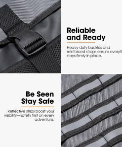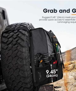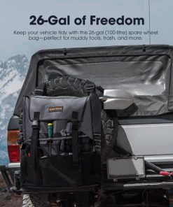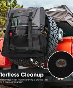 Mantén organizado tu vehículo de manera impecable con nuestra espaciosa bolsa de basura para neumático de repuesto de 100 litros/26 galones. Construido para la eficiencia, es ideal para almacenar herramientas de recuperación sucias, basura y otros elementos esenciales. Con todo perfectamente guardado, protegerás tu vehículo del polvo y el desorden, al mismo tiempo que gestionas los residuos de manera responsable, una elección eco-amigable para cada aventura. Fabricada con nylon resistente de 1680D, esta bolsa de neumático de repuesto está diseñada para resistir las condiciones más duras. Su diseño resistente a la abrasión y los arañazos garantiza que soporte las rigurosidades de las aventuras todoterreno, mientras que la protección UV hace que se vea genial con el paso del tiempo. Confía en esta bolsa para que sea tu compañera de confianza en cada viaje al aire libre, ofreciendo una durabilidad sin igual y un estilo resistente. Viaja con tranquilidad, sabiendo que tus pertenencias están protegidas de los elementos. El interior resistente al agua recubierto de PVC mantiene tus artículos a salvo de la lluvia inesperada y el barro, mientras que la limpieza es pan comido, simplemente límpialo o enjuágalo después de tus aventuras. Con esta protección fiable, siempre estás preparado para lo que sea que el clima te depare. Experimenta un acceso sin esfuerzo con bolsillos de malla de 9.45» estratégicamente colocados alrededor de la base de la bolsa de neumático de repuesto, lo que facilita agarrar elementos esenciales como herramientas o equipo de recuperación en segundos, sin necesidad de cavar. El cordón ajustable garantiza un ajuste ceñido, mientras que el cierre de solapa seguro mantiene tus elementos seguros, incluso en los viajes más accidentados. Diseñado para la conveniencia, esta bolsa de neumático de repuesto se instala rápidamente en tu neumático de repuesto o parachoques delantero. Las tiras reflectantes en la parte delantera y los lados aumentan la visibilidad en condiciones de poca luz, garantizando una mayor seguridad en tus excursiones al aire libre. Además, con una garantía de dos años, puedes embarcarte en tus aventuras con confianza, sabiendo que tu producto está protegido y está hecho para durar.