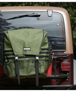 Bolsa de basura para neumático de repuesto Trasharoo Verde es el accesorio perfecto para llevar su basura de manera conveniente y segura durante sus excursiones de fin de semana en su vehículo todoterreno. Hecho de lona de alta calidad de 900 deniers, este producto le permite mantener limpios los senderos mientras disfruta de la naturaleza. Su amplia capacidad le permite transportar hasta 50 libras de peso y se adapta perfectamente a una bolsa de basura estándar de 30 galones para facilitar su vaciado. Además, su resistencia a la intemperie lo hace ideal para cualquier condición climática, ya que está tratado con un recubrimiento interior resistente al agua y cuenta con orificios de drenaje en la parte inferior para evitar posibles fugas. Asegure su basura de manera eficiente y respetuosa con el medio ambiente con la Bolsa de basura para neumático de repuesto Trasharoo Verde.