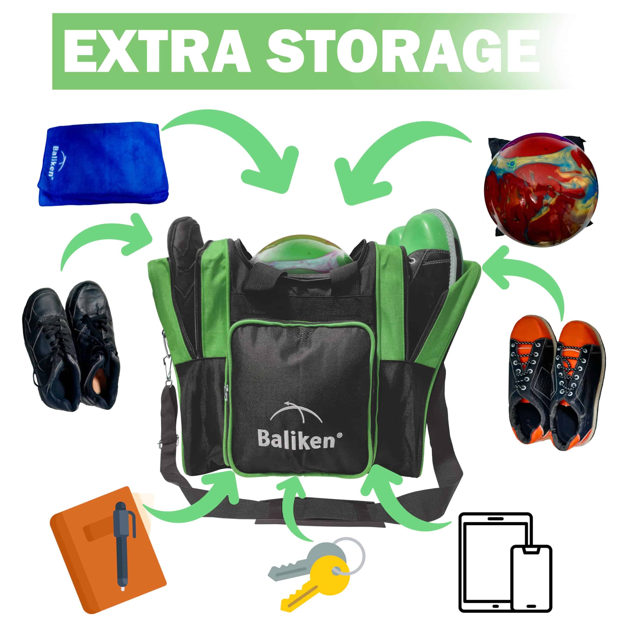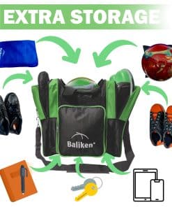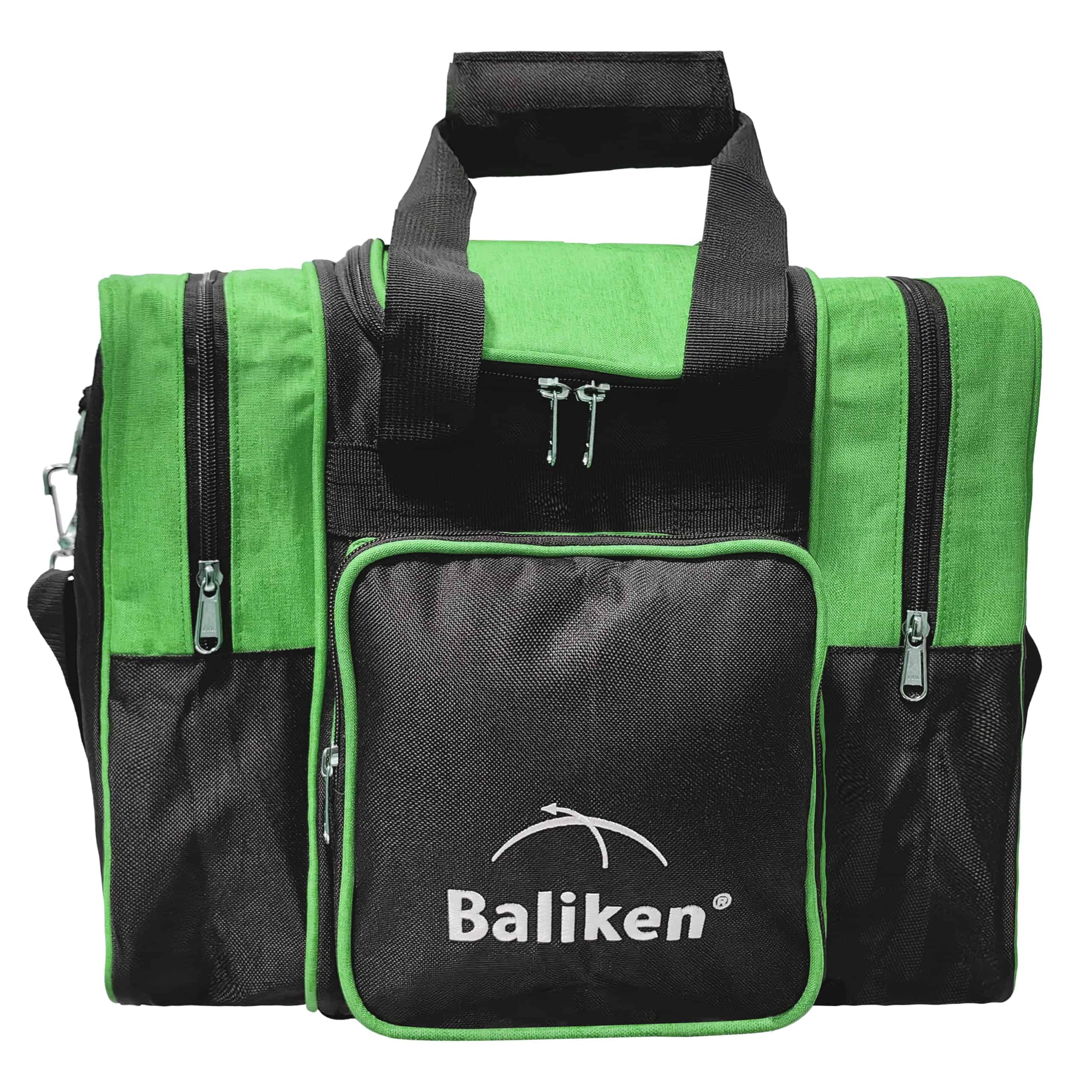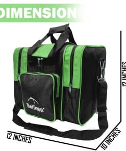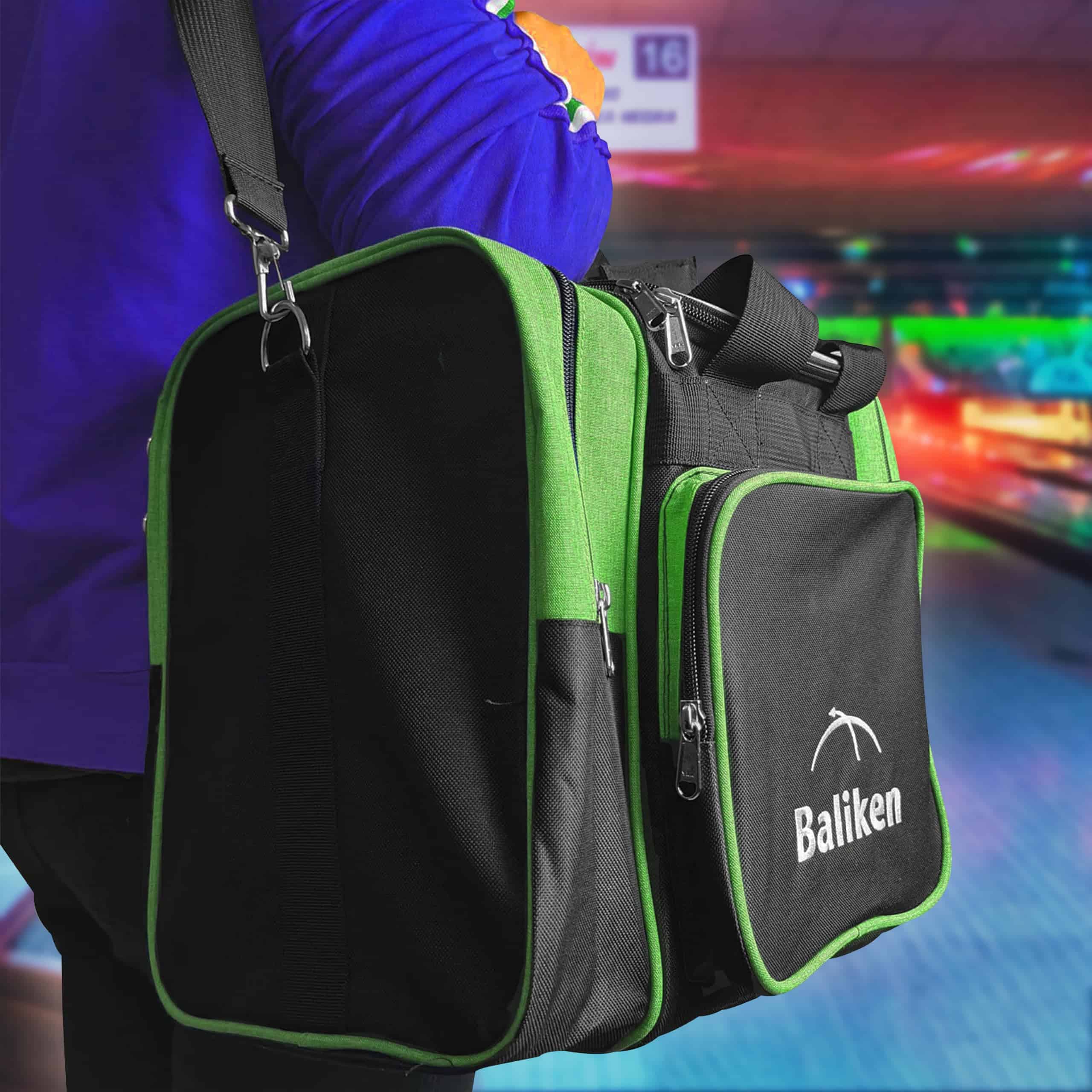 La bolsa de bolos individual BALIKEN es ideal para llevar tu equipo de bolos de manera segura y cómoda. Está fabricada con tela Oxford 600D premium y resistente, lo que garantiza su durabilidad. La bolsa cuenta con un compartimento especial para la bola, que incluye un soporte de espuma removible para mantener tu bola de bolos protegida contra daños durante el transporte. Además, tiene un compartimento para zapatos de talla de hombre «13, un espacio adicional para otro equipo y un compartimento principal para la bola de bolos. La bolsa cuenta con un asa acolchada y correas para el hombro, lo que la hace fácil de transportar y reduce el estrés en tus brazos y hombros. Si buscas un producto de alta calidad y durabilidad para tus partidas de bolos, ¡la bolsa de bolos individual BALIKEN es la elección perfecta! ¡Contáctanos si tienes cualquier duda o pregunta!
