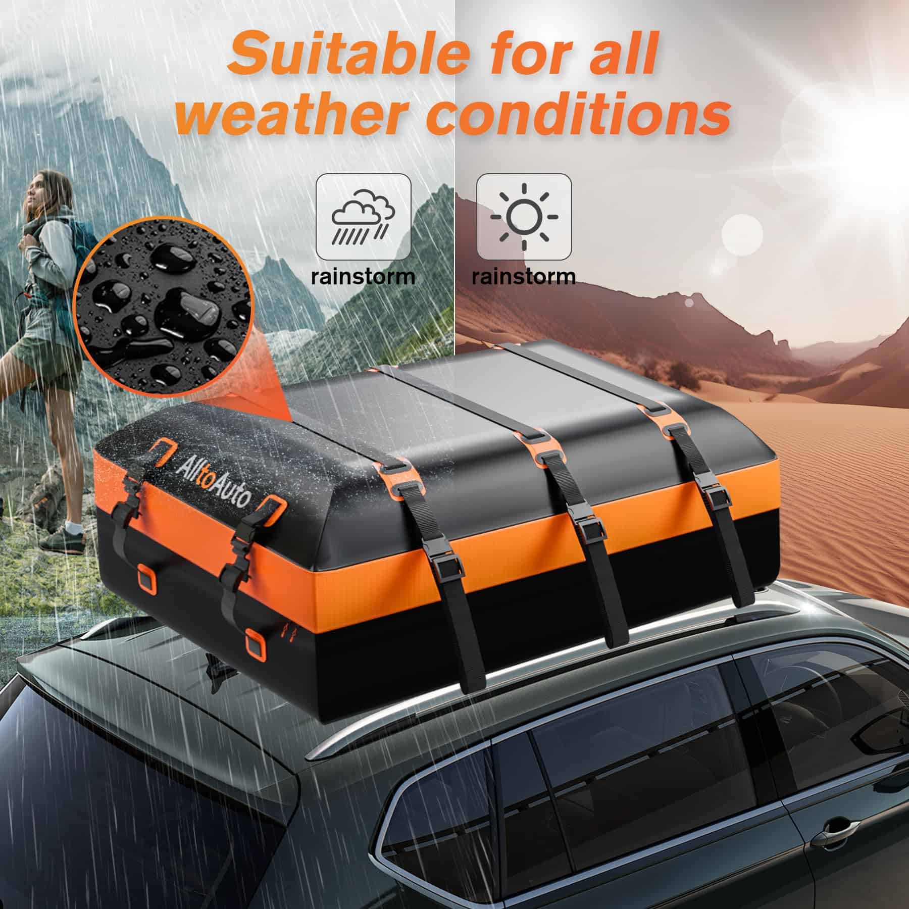 Bolsa de Carga para Automóvil de AlltoAuto, 100% Impermeable-21 Pies Cúbicos, Estera Protectora, Bolsa de Almacenamiento, Correas y Ganchos Incluidos, Bolsa de Caparazón Suave para Todos los Autos y Camiones con o Sin Racks