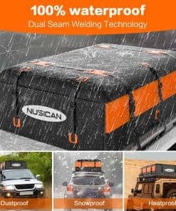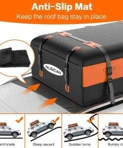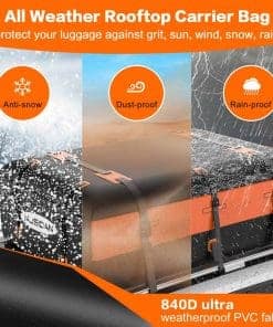 La bolsa de carga para automóvil en el techo de NUSICAN es la solución perfecta para transportar equipaje adicional en tu vehículo. Con una capacidad de 21 pies cúbicos, este accesorio es 100% impermeable y está fabricado con PVC 840D resistente a los desgarros. Puede ser utilizada en cualquier SUV con o sin racks, proporcionando espacio adicional para tus viajes. Además, la bolsa incluye una alfombrilla antideslizante para proteger el techo de tu automóvil y una bolsa de almacenamiento para guardarla fácilmente cuando no se está utilizando. ¡Hazte con esta bolsa de carga de calidad para tus aventuras en carretera!