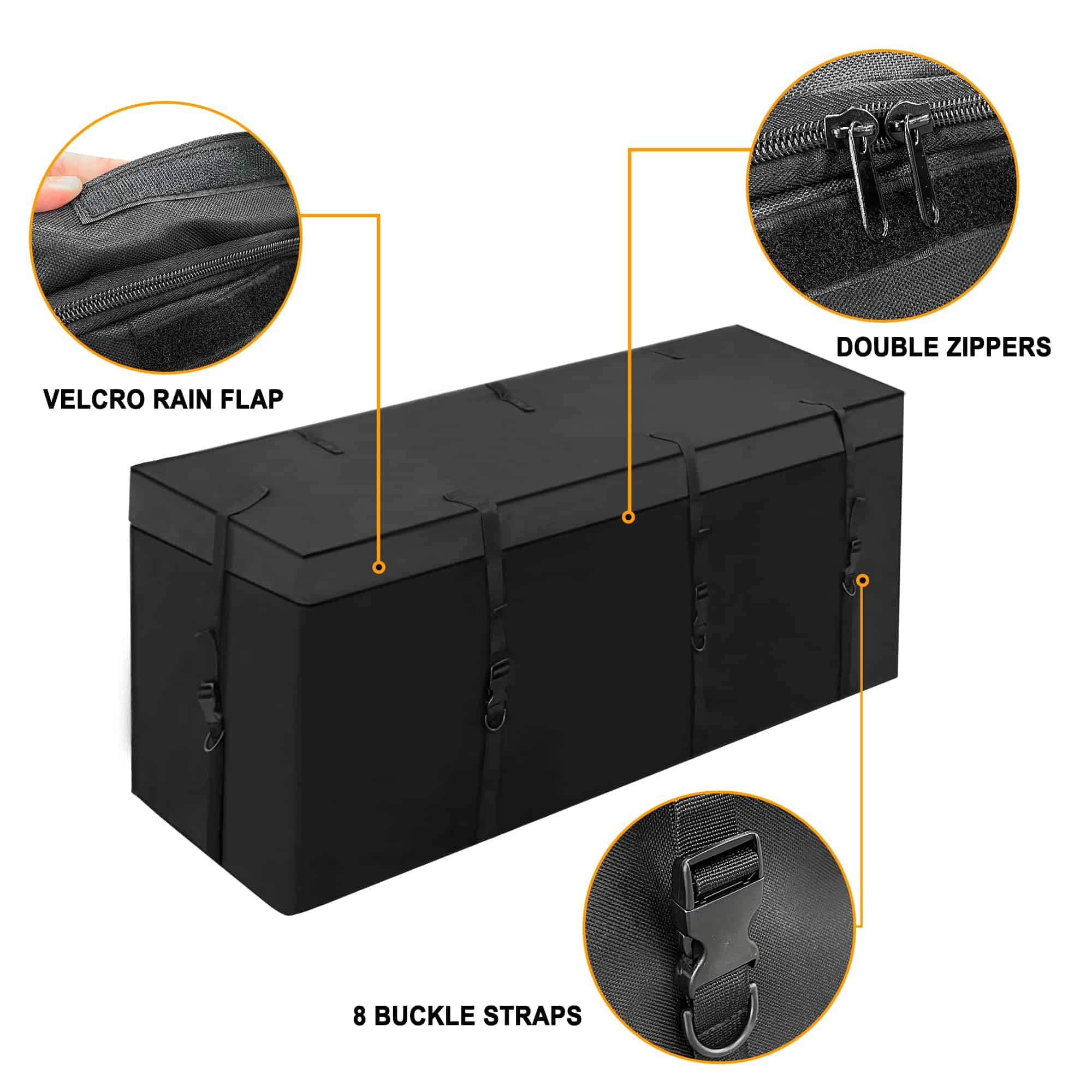La Bolsa de Carga para Portaequipajes MDSTOP es la solución perfecta para aumentar la capacidad de almacenamiento de tu vehículo y mantener tus artículos protegidos en cualquier condición climática. Fabricada con materiales de alta calidad, como Oxford 600D y cremalleras dobles impermeables, garantiza que tus artículos permanezcan secos y seguros mientras viajas. Con una capacidad de 12.5 Cu Ft, esta bolsa espaciosa puede contener varios sacos de dormir, maletas y otros objetos grandes. Su diseño resistente y seguro incluye 8 correas de sujeción que se ajustan firmemente al portador, manteniendo la carga en su lugar incluso en terrenos difíciles. Fácil de instalar en minutos, este portador plegable se puede guardar fácilmente cuando no está en uso, ahorrando espacio. Perfecto para actividades al aire libre como campamentos, eventos deportivos y mudanzas, la Bolsa de Carga para Portaequipajes MDSTOP es una adición práctica y conveniente para tu vehículo.