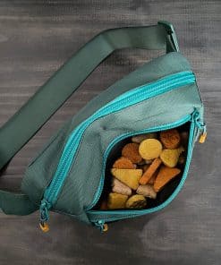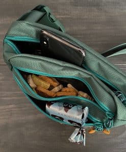 ¡Es la combinación definitiva de bolsa de cintura y bolsa de golosinas con tres compartimentos separados! ¡Aunque es lo suficientemente grande como para llevar tu teléfono, billetera, bolsas de caca y más de una taza de golosinas, la Utility Pack sigue siendo lo suficientemente pequeña como para sentarse cómodamente en tu cintura! El agujero de la bolsa de caca de goma desde el bolsillo delantero dispensa fácilmente un rollo de bolsas de caca, mientras que la cinta negra está diseñada para poder sujetar equipo extra en la parte delantera. ¡Wilderdog no utiliza animales ni subproductos animales en ninguno de nuestros equipos! ¡Cualquier material que parezca cuero es completamente vegano! Mantente hidratado con una botella de agua plegable de 0.7L. Dentro de la bolsa, cabrá aproximadamente 0.35L con la botella doblada a la mitad, ¡o sujétala en el exterior de la bolsa!