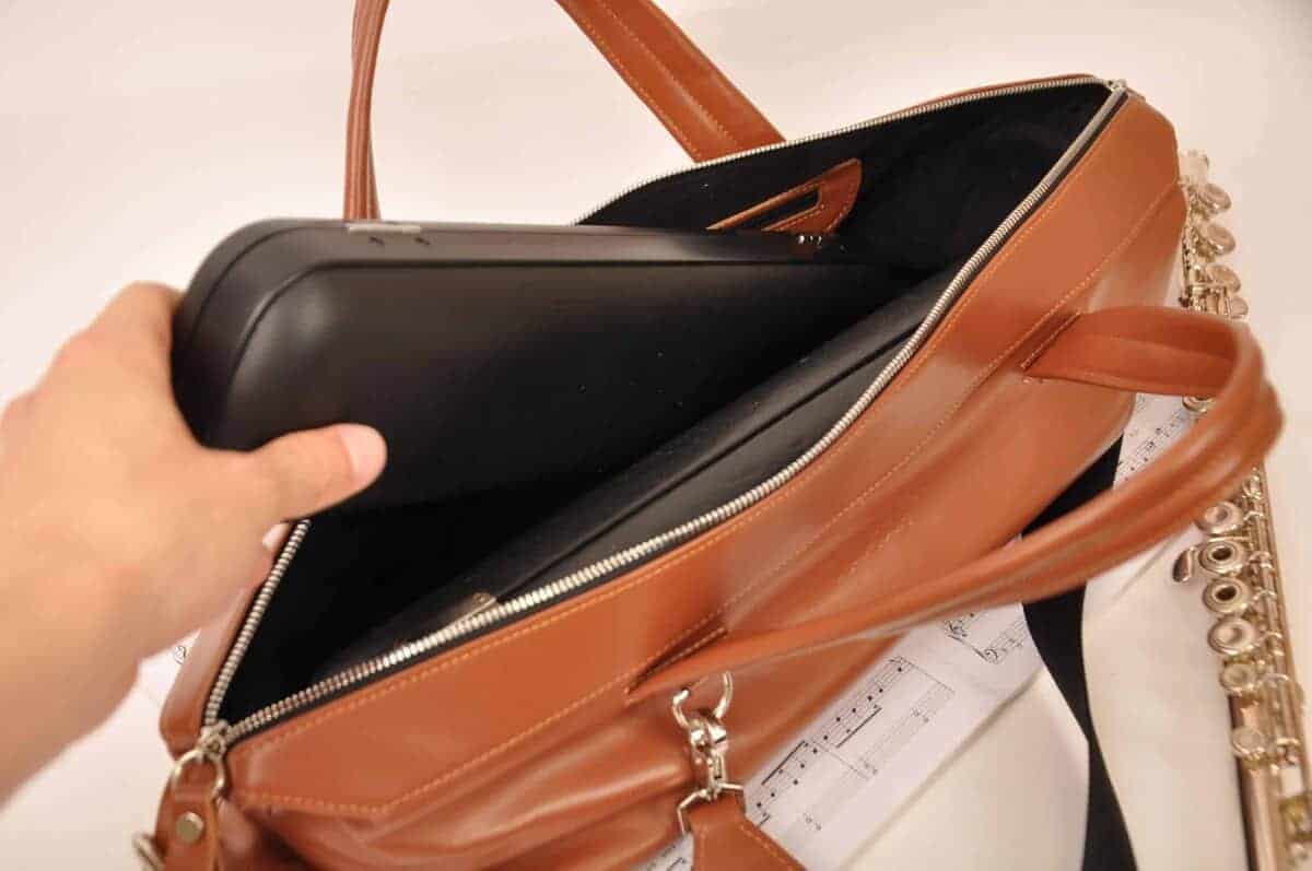 Esta bolsa para flauta es el resultado de una exitosa combinación entre soluciones prácticas y hermosos materiales. Está diseñada para una vida cotidiana ocupada y viajes cómodos. ¡Puedes poner la flauta en el estuche rígido y luego en esta bolsa y salir a la carretera! Si viajas mucho o simplemente estás cansado de los aburridos estuches comunes, ¡este no te decepcionará!