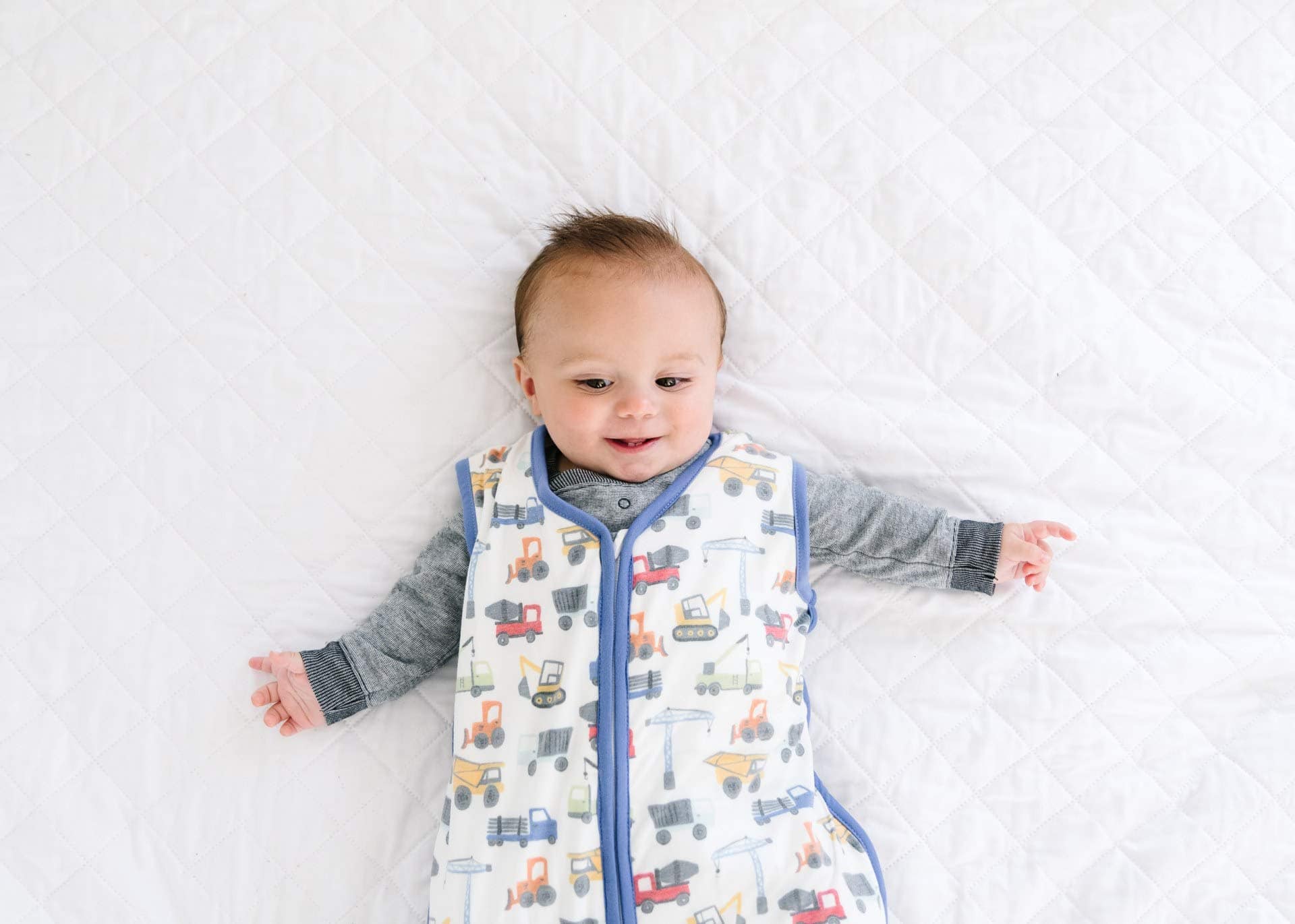 PREMIUM POLYESTER/RAYON BLEND Con tres capas de tejido de punto suave para una suavidad y elasticidad superiores, nuestras bolsas de dormir de tres capas están diseñadas pensando en la comodidad del bebé. Por eso las creamos con una tela ultra suave y transpirable con solo un toque justo de elasticidad. Puedes sentirte seguro de que el bebé se sentirá acogedor y cómodo envuelto en esta bolsa de dormir especial como la alternativa más segura al uso de mantas sueltas. Estas bolsas para dormir están hechas del mismo material ultra suave y elástico que nuestras mantas de bebé originales de punto. CÁLIDO Y ACOLCHADO Nuestras Bolsas para dormir tienen una clasificación de 1.25 grados térmicos en general (TOG) ideal para temperaturas de habitación entre 65 y 75 grados F y un diseño sin mangas para ofrecer la cantidad perfecta de calor para su uso durante todo el año, ayudando al bebé a dormir toda la noche. TAMAÑO GENEROSO El tamaño de 0-6 meses proporciona una longitud de 26.5 pulgadas, ancho de 13 pulgadas debajo de las axilas y 18.5 pulgadas en la sección más ancha de la bolsa de dormir. El tamaño de 6-12 meses proporciona una longitud de 28 pulgadas, ancho de 14 pulgadas debajo de las axilas y 19 pulgadas en la sección más ancha de la bolsa de dormir. CARACTERÃSTICAS ADICIONALES Nuestras Bolsas de dormir también cuentan con un cuello cómodo sin etiquetas y una conveniente cremallera de arriba a abajo para ponerla y quitarla fácilmente. DISEÑOS MODERNOS DE ALTA CALIDAD En Copper Pearl nos enorgullecemos de hacer productos de alta calidad que siempre se ven geniales en bebés, mamás o en tu guardería. Nuestras bolsas para dormir son simples, modernas y seguramente elevarán el estilo de cualquier guardería