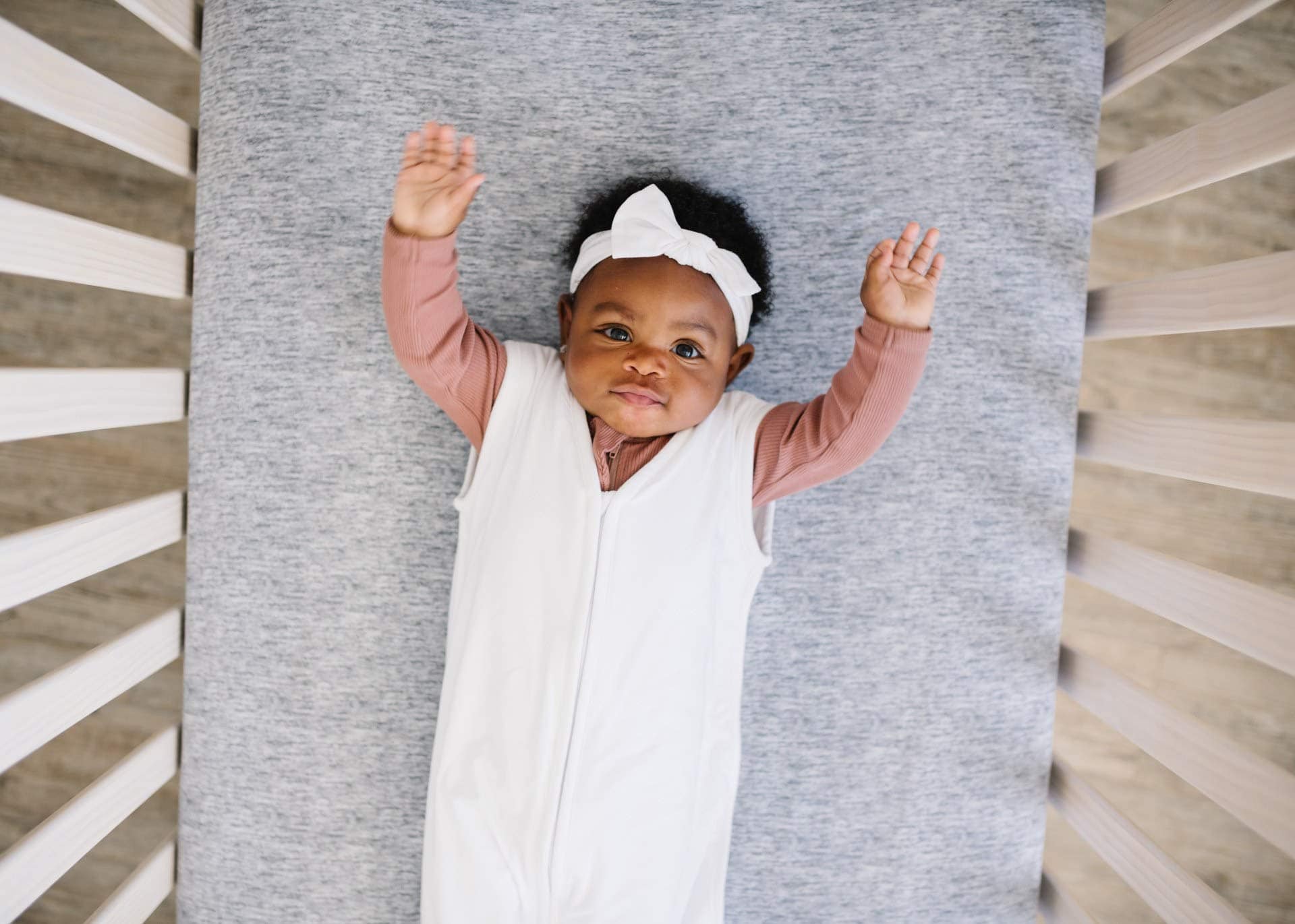 Conoce la manta que no se puede patear; La alternativa más segura a las mantas sueltas, nuestra Bolsa de Dormir imprescindible fue hecha para ayudar al bebé a dormir toda la noche; Con tres capas de tela de punto suave para una suavidad y elasticidad superiores, presenta un cuello cómodo sin etiquetas y una cremallera conveniente de arriba hacia abajo para ponerse y quitarse fácilmente; Disponible en tus estampados Copper Pearl favoritos, tiene una clasificación TOG de 1.70 y un diseño sin mangas para ofrecer la cantidad perfecta de calor para uso durante todo el año