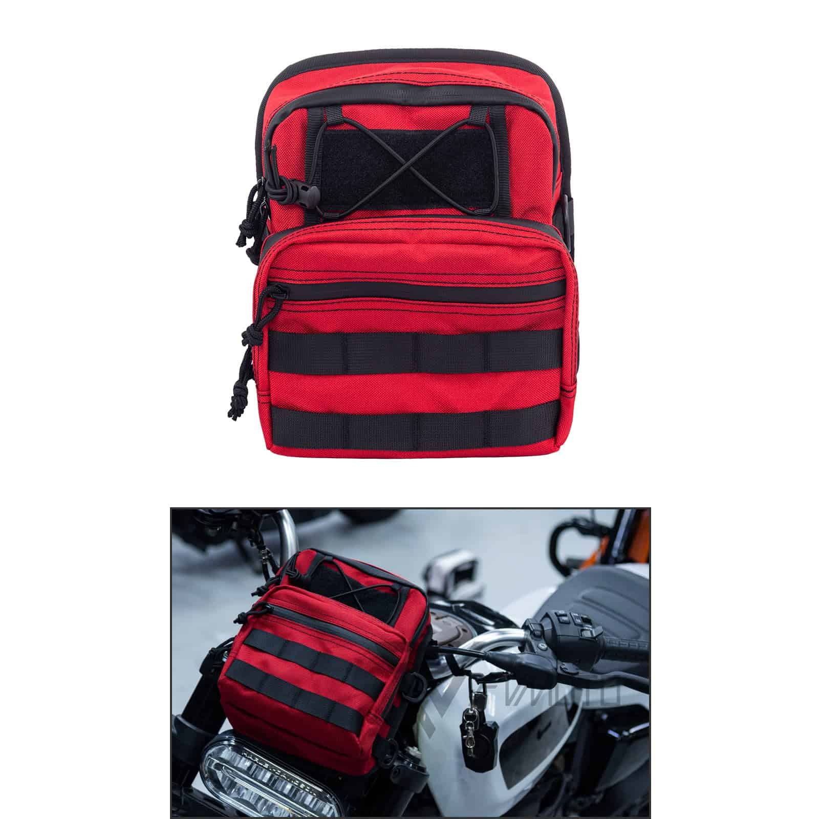Bolsa de almacenamiento multipropósito: La bolsa de manillar se puede configurar de muchas maneras, como detrás del carenado, encima del faro, o llevada contigo usando la correa para el hombro.