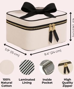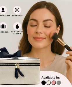 Eleve su organización de belleza con nuestra PremiumBox de maquillaje. Guarde todos sus elementos esenciales de belleza con estilo en esta versátil bolsa de maquillaje organizadora. Diseñada para amantes de la belleza de todos los niveles, este elegante organizador combina una funcionalidad superior con un diseño elegante. El tamaño perfecto (9.4×6.5×5.9″) para elementos esenciales diarios y para llevarlos a cualquier lugar. Elija su color perfecto: seleccione entre cinco opciones elegantes: clásico Negro, sofisticado Crema, moderno Mezclilla, chic Rosa o atemporales Rayas en Blanco y Negro. Construcción duradera y elegante: Fabricadas con materiales premium para una construcción resistente, nuestras bolsas organizadoras de maquillaje mantienen sus cosméticos seguros, protegidos y organizados. Diseño multiusos: Esta caja de maquillaje es la solución ideal tanto para un organizador de tocador estacionario como para una bolsa de maquillaje de viaje, proporcionando fácil acceso a sus elementos esenciales de belleza donde quiera que vaya. Ya sea un profesional del maquillaje o alguien en busca de una opción de almacenamiento confiable y elegante, nuestro organizador de maquillaje se adapta a sus necesidades, combinando funcionalidad, durabilidad y elegancia en un paquete chic.