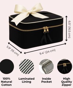 Eleva tu organización de belleza con nuestra caja de maquillaje premium Empaqueta todos tus elementos esenciales de belleza con estilo con este versátil organizador de bolsa de maquillaje. Diseñado para amantes de la belleza de todos los niveles, este elegante organizador combina funcionalidad superior con un diseño elegante. El tamaño perfecto (9.4×6.5×5.9″) para elementos esenciales diarios y en movimiento. Elige tu color perfecto: Elige entre cinco elegantes opciones: Negro clásico, Crema sofisticada, Denim de moda, Rosa chic o Rayas Blanco y Negro atemporales. Construcción duradera y elegante: Fabricadas con materiales premium para una construcción resistente, nuestras bolsas organizadoras de maquillaje mantienen tus cosméticos seguros, seguros y organizados. Personalízalo: Añade un toque personal con la personalización de monograma. Tu nombre o iniciales en tu bolsa de maquillaje la hacen realmente tuya, perfecta para regalos o uso personal. Diseño multipropósito: Esta caja de maquillaje es la solución ideal para un organizador de tocador estacionario y una bolsa de maquillaje de viaje, proporcionando un fácil acceso a tus elementos de belleza dondequiera que vayas. Ya seas un profesional del maquillaje o alguien que busca una opción de almacenamiento confiable y elegante, nuestro organizador de maquillaje se adapta a tus necesidades, combinando funcionalidad, durabilidad y elegancia en un paquete chic. Personalización incluida.