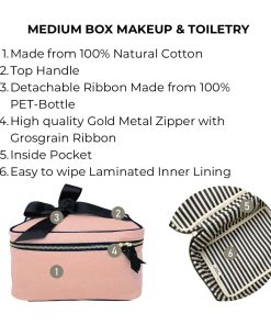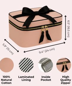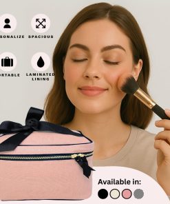 Eleve su organización de belleza con nuestra caja de maquillaje premium. Bolsa todos tus imprescindibles de belleza con estilo con este organizador de bolsas de maquillaje versátil. Diseñado para amantes de la belleza de todos los niveles, este elegante organizador combina funcionalidad superior con un diseño elegante. El tamaño perfecto (9.4×6.5×5.9″) para los imprescindibles diarios y en movimiento. Elija su color perfecto: Elija entre cinco elegantes opciones: clásico Negro, sofisticado Crema, moderno Mezclilla, chic Rosa o atemporal Negro y Blanco a Rayas. Construcción duradera y elegante: Fabricadas con materiales premium para una construcción resistente, nuestras bolsas organizadoras de maquillaje mantienen sus cosméticos seguros, protegidos y organizados. Diseño multiusos: Esta caja de maquillaje es la solución ideal tanto para un organizador de tocador fijo como para una bolsa de maquillaje de viaje, brindando un acceso fácil a sus imprescindibles de belleza dondequiera que vaya. Ya sea un profesional del maquillaje o alguien en busca de una opción de almacenamiento confiable y elegante, nuestro organizador de maquillaje se adapta a sus necesidades, combinando funcionalidad, durabilidad y elegancia en un paquete elegante. Personalización incluida.