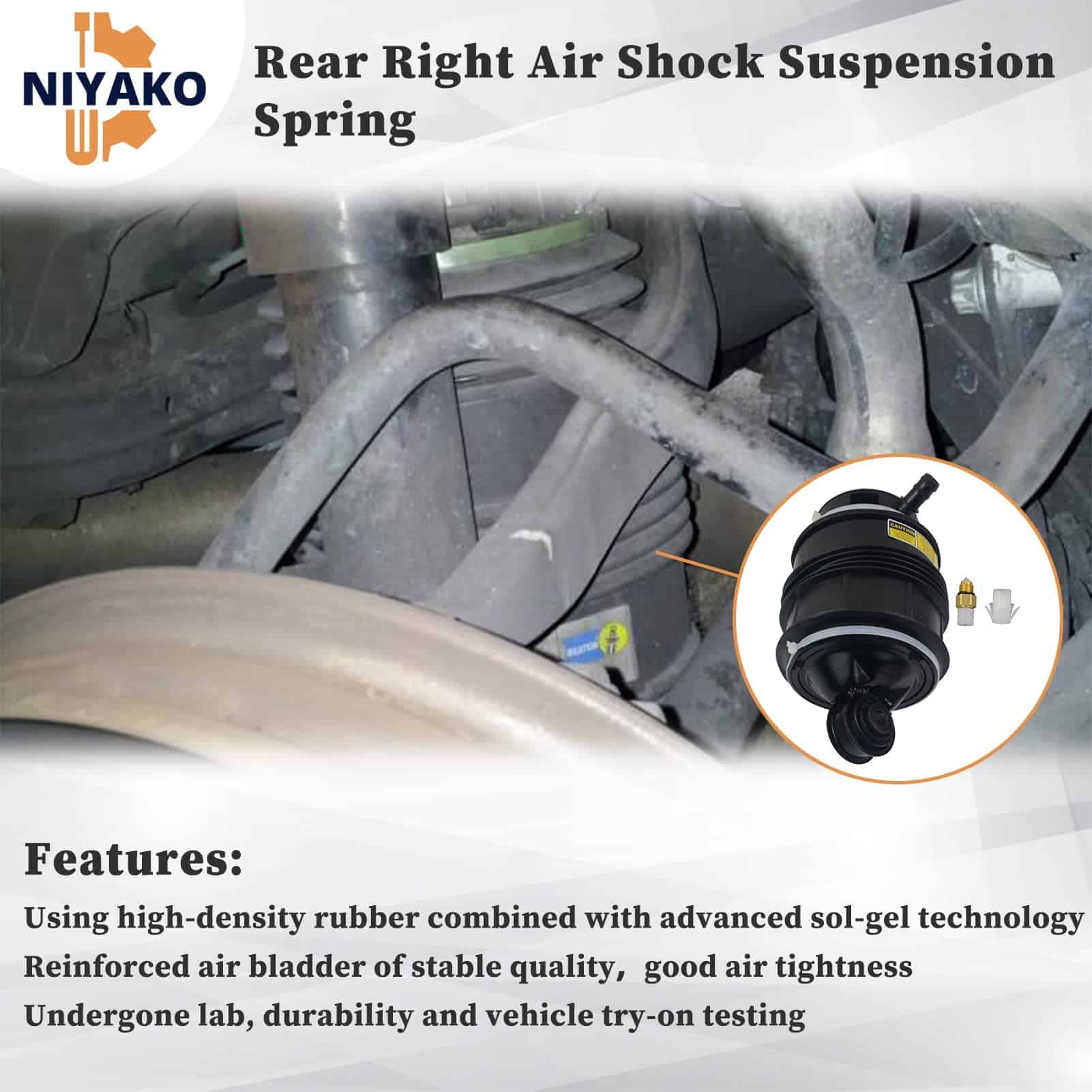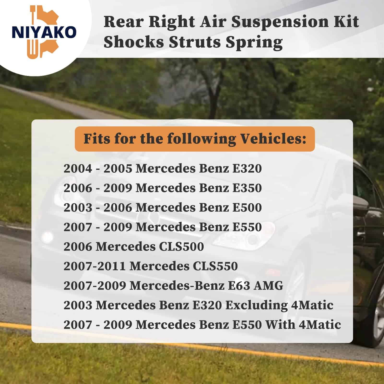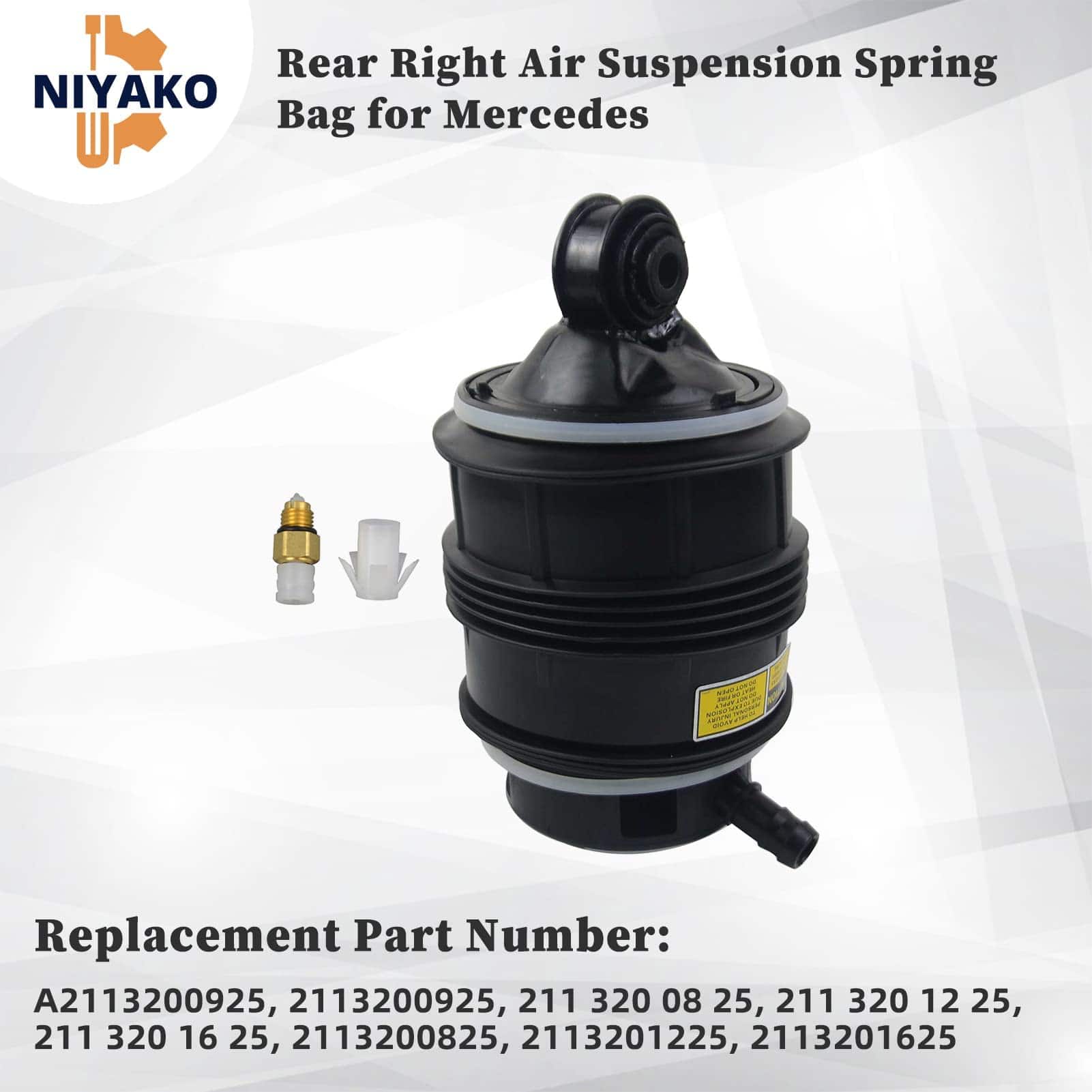 Niyako se especializa en la venta de bolsa de resorte de suspensión de aire trasera derecha de reemplazo para Mercedes Benz W211 E320 E350 E500 E550 E55 AMG E63AMG W219 2003-2011. Esta bolsa de resorte está diseñada para garantizar un rendimiento confiable, manteniendo su vehículo en condiciones óptimas en todo momento. Los números de parte de reemplazo incluyen A2113200925, 2113200925, 211 320 08 25, 211 320 12 25, 211 320 16 25, 2113200825, 2113201225, 2113201625. Asegúrese de que esta pieza se ajuste a su vehículo ingresando el modelo en la herramienta de ajuste confirmado para su verificación.