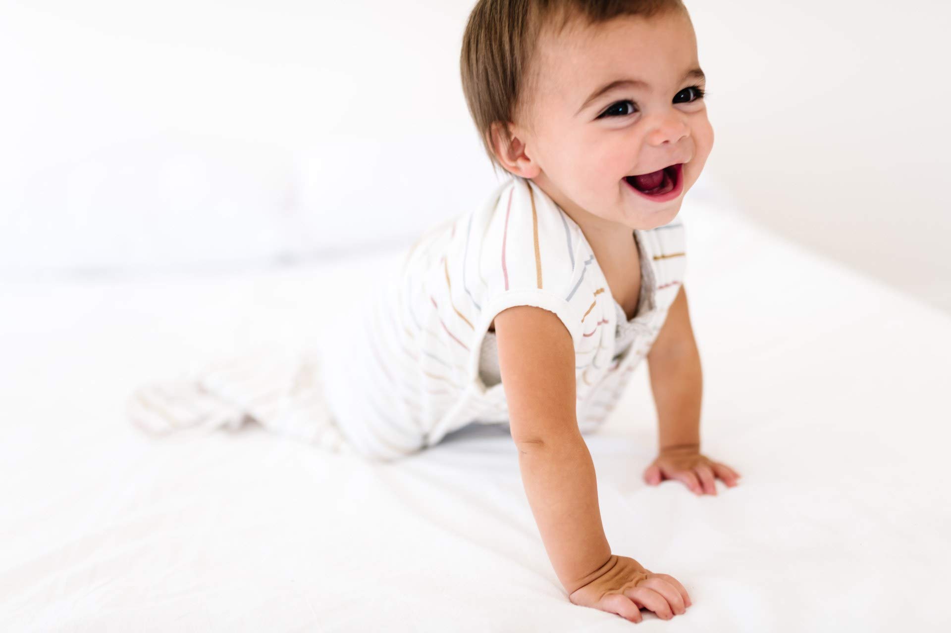 Conoce la manta que no puede ser pateada; La alternativa más segura a las mantas sueltas, nuestra Bolsa de Sueño imprescindible fue diseñada para ayudar al bebé a dormir toda la noche; Con tres capas de tejido de punto suave y elástico, cuenta con un cómodo cuello sin etiquetas y un conveniente cierre de arriba a abajo para ponerse y quitarse fácilmente; Disponible en tus estampados favoritos de Copper Pearl, tiene un índice TOG de 1.70 y un diseño sin mangas para ofrecer la cantidad perfecta de calor para uso durante todo el año.