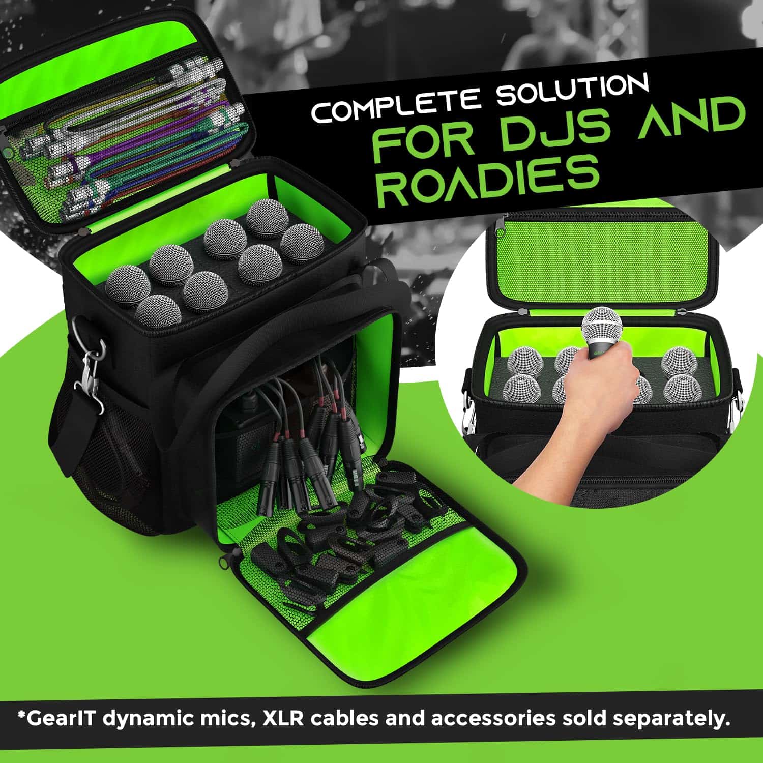 Bolsa de transporte para 8 micrófonos GEARit: mantén tus micrófonos y accesorios organizados y protegidos con este estuche suave acolchado de GEARit. Con capacidad para hasta ocho micrófonos de escenario estándar dinámicos o inalámbricos, este bolso te permite transportar tu colección de micrófonos con seguridad a cualquier lugar. Cuatro inserciones modulares te permiten configurar la caja de micrófonos de la manera que prefieras, mientras que los compartimentos de espuma extra profundos tienen espacio suficiente para ajustar la longitud adicional de los micrófonos inalámbricos además de los micrófonos dinámicos estándar.