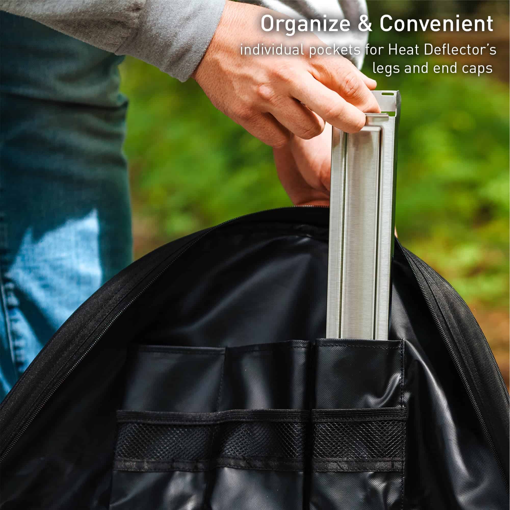 3. ORGANIZACIÓN: Almacenamiento ordenado con bolsillos individuales para las patas y las tapas finales del deflector de calor mantiene todo junto. La bolsa está diseñada para que el deflector de calor encaje perfectamente, brindando un ajuste seguro que evitará que se deslice o se dañe durante el transporte.
