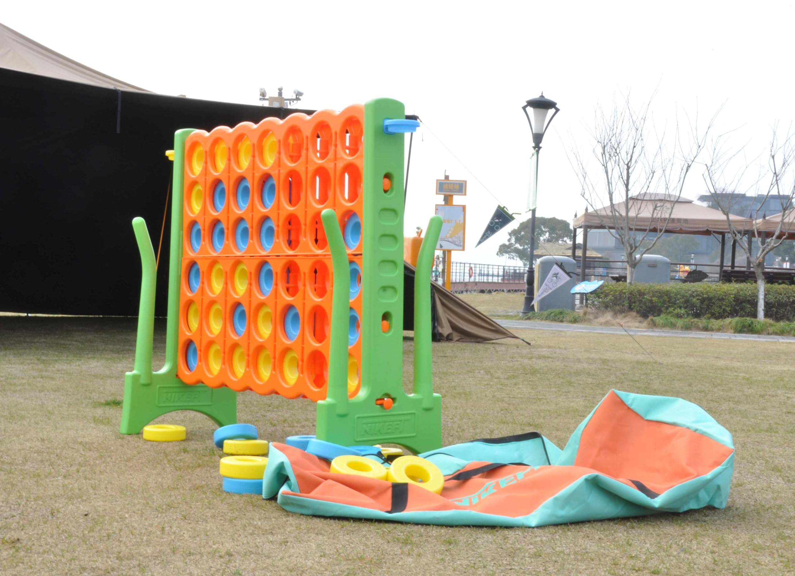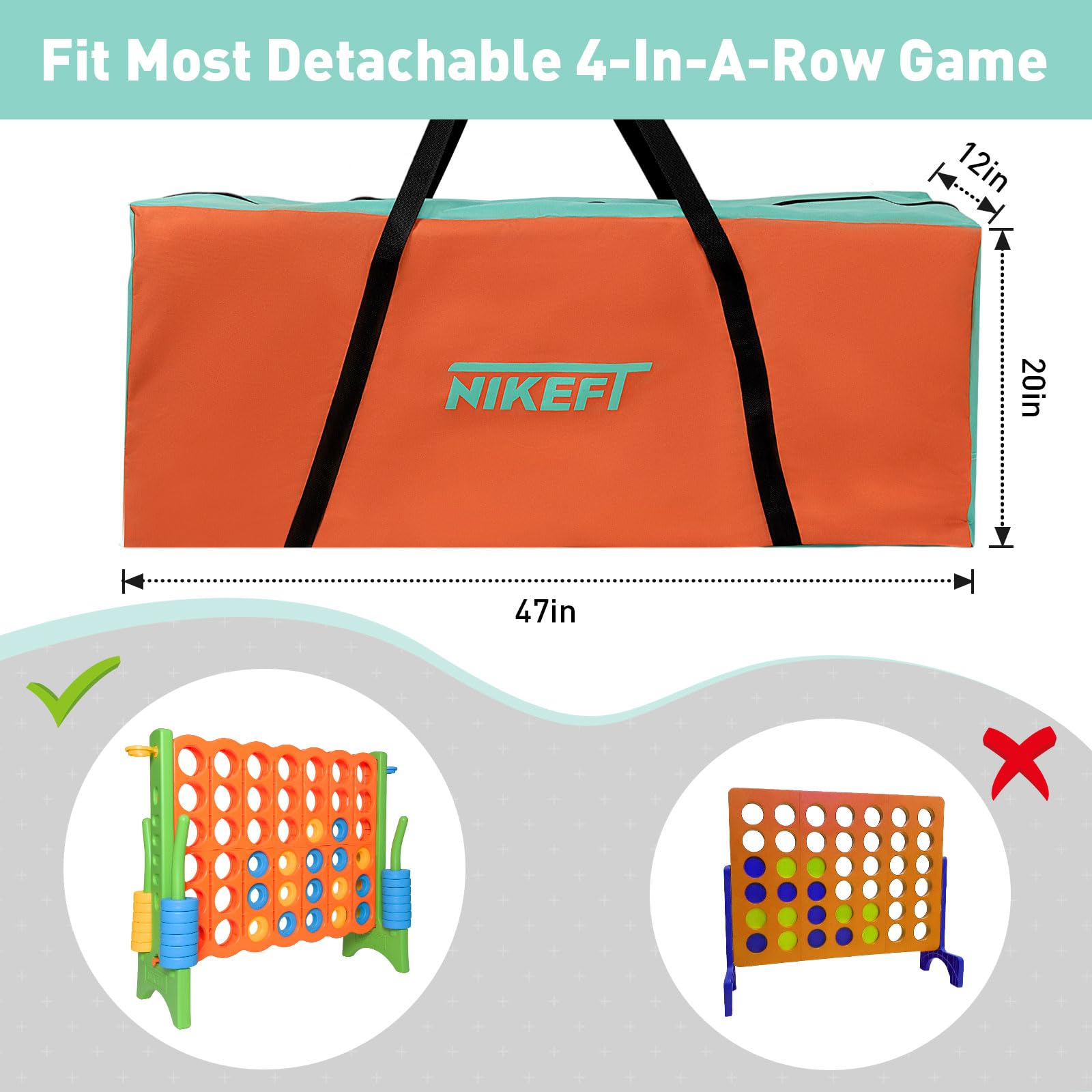 Imagina las risas y emoción al reunir amigos y familiares para un juego tan cautivador como entretenido. Ya sea que estés planeando un día en la playa, un picnic en el parque, un viaje de camping o una fiesta de BBQ, la Bolsa de transporte para juego Gigante 4-to-Score de N1keft lo hace posible. Montaje y transporte sin esfuerzo