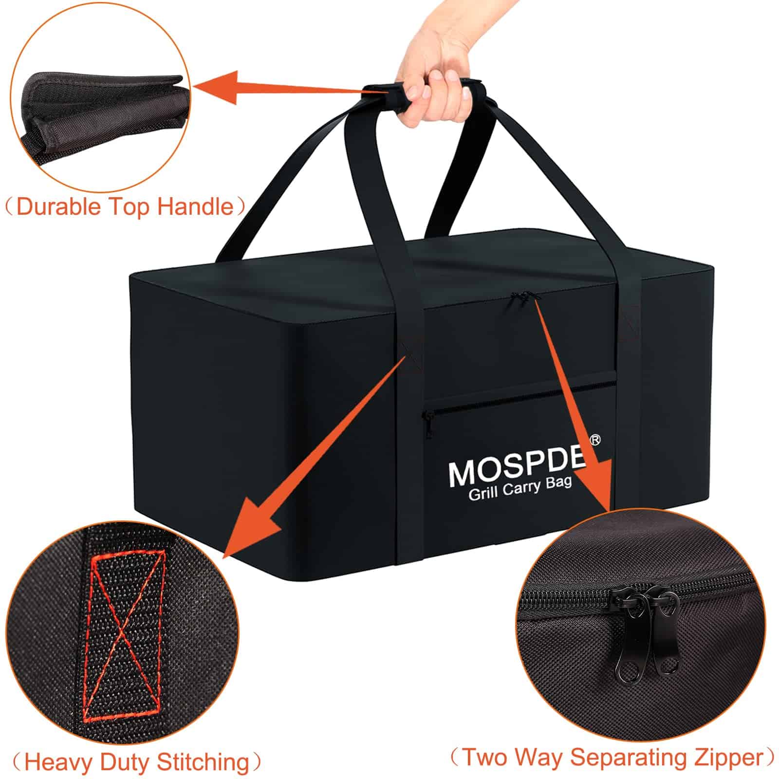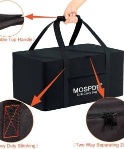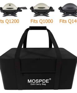 1. Se ajusta a las parrillas Weber Q1200 Q1000 y Q1400 – Bolsa de transporte para parrilla de tamaño grande diseñada a medida para las parrillas Weber Q1200 Q1000 y Q1400, y para accesorios de parrilla Weber. 2. Bolsa de transporte de 600D resistente al agua mejorada – Hecha con material exterior impermeable de tela Oxford 600D más gruesa y material interior impermeable, protege mejor tu parrilla para exteriores. 3. Bolsa de transporte para parrilla con costuras resistentes y materiales gruesos – Material impermeable de tela Oxford 600D más gruesa resistente. Costuras pesadas, ya no se rasgarán. Soportarán de forma segura hasta 100 libras. 4. La bolsa de transporte para parrilla de gas propano es fácil de llevar y mover – Bolsa de transporte para parrilla con cremallera de dos vías, es fácil colocar la parrilla de gas propano en la base de la unidad y deslizarla en la bolsa. Asa superior duradera, hace que transportar la parrilla durante el camping sea muy sencillo. 5. Protege la parrilla de arañazos y marcas – Ideal para mantener la parrilla exterior libre de arañazos y marcas mientras se transporta en la parte trasera de un camión con todo lo demás.