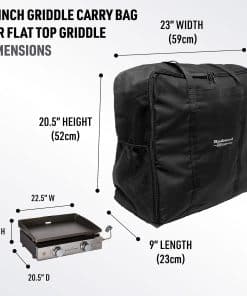 8. DIMENSIONES: Con 23″ x 20.5″ x 9″, esta bolsa se ajusta perfectamente a una parrilla de 22 pulgadas Blackstone sin capucha, una Pit Boss PB3366GS Pit Boss de 2 quemadores y la mayoría de las planchas planas de 22 pulgadas sin capucha. Por favor, mida su parrilla de antemano para evitar decepciones.