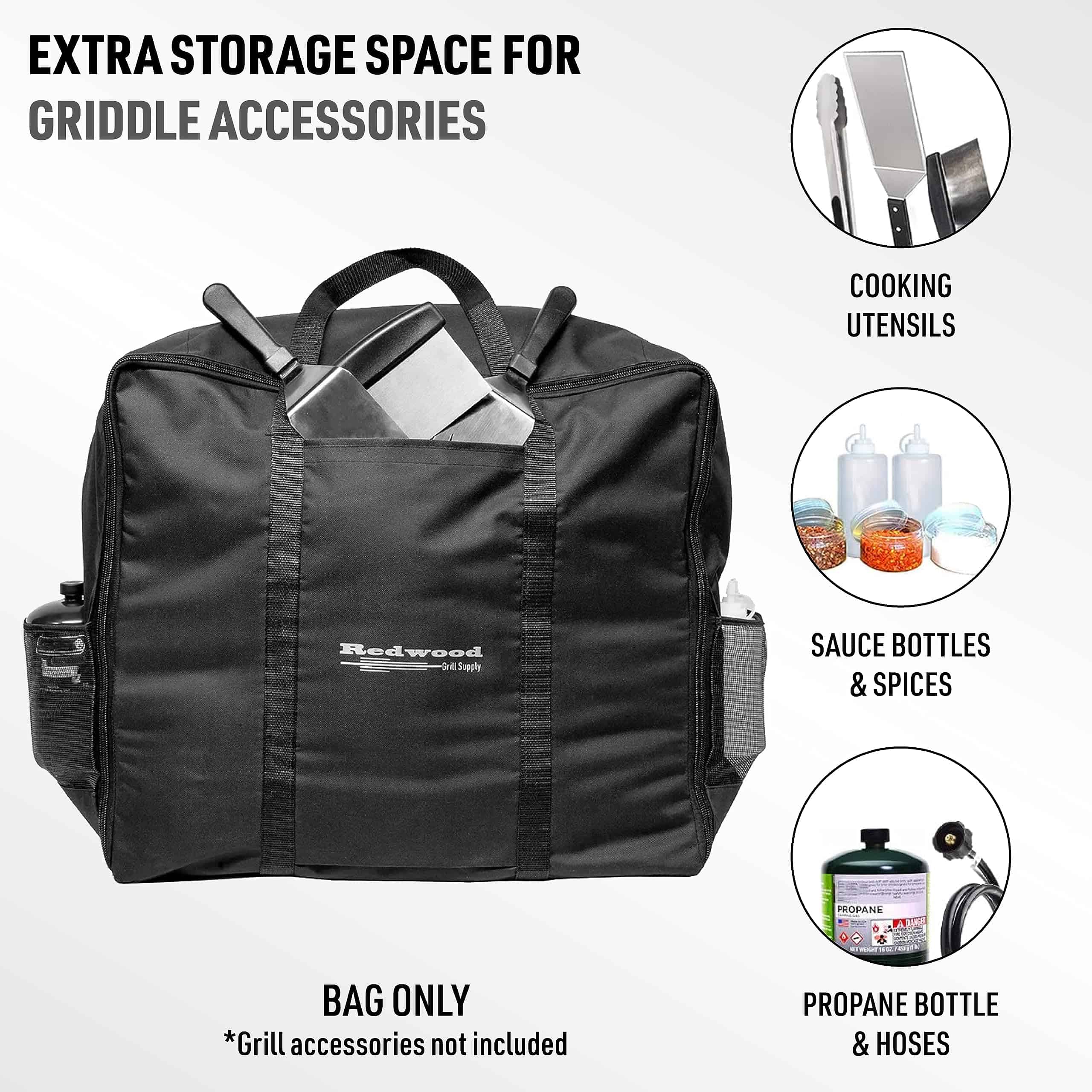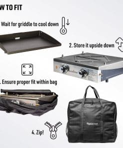 4. ALMACENAMIENTO SIN PROBLEMAS: ¡Simplemente coloque su parrilla dentro de esta bolsa de almacenamiento para parrilla Blackstone de 22 pulgadas, cierre la cremallera y estará listo para llevar! TENGA EN CUENTA QUE LA PARRILLA NO CABRÁ CON LA CAPUCHA INSTALADA.