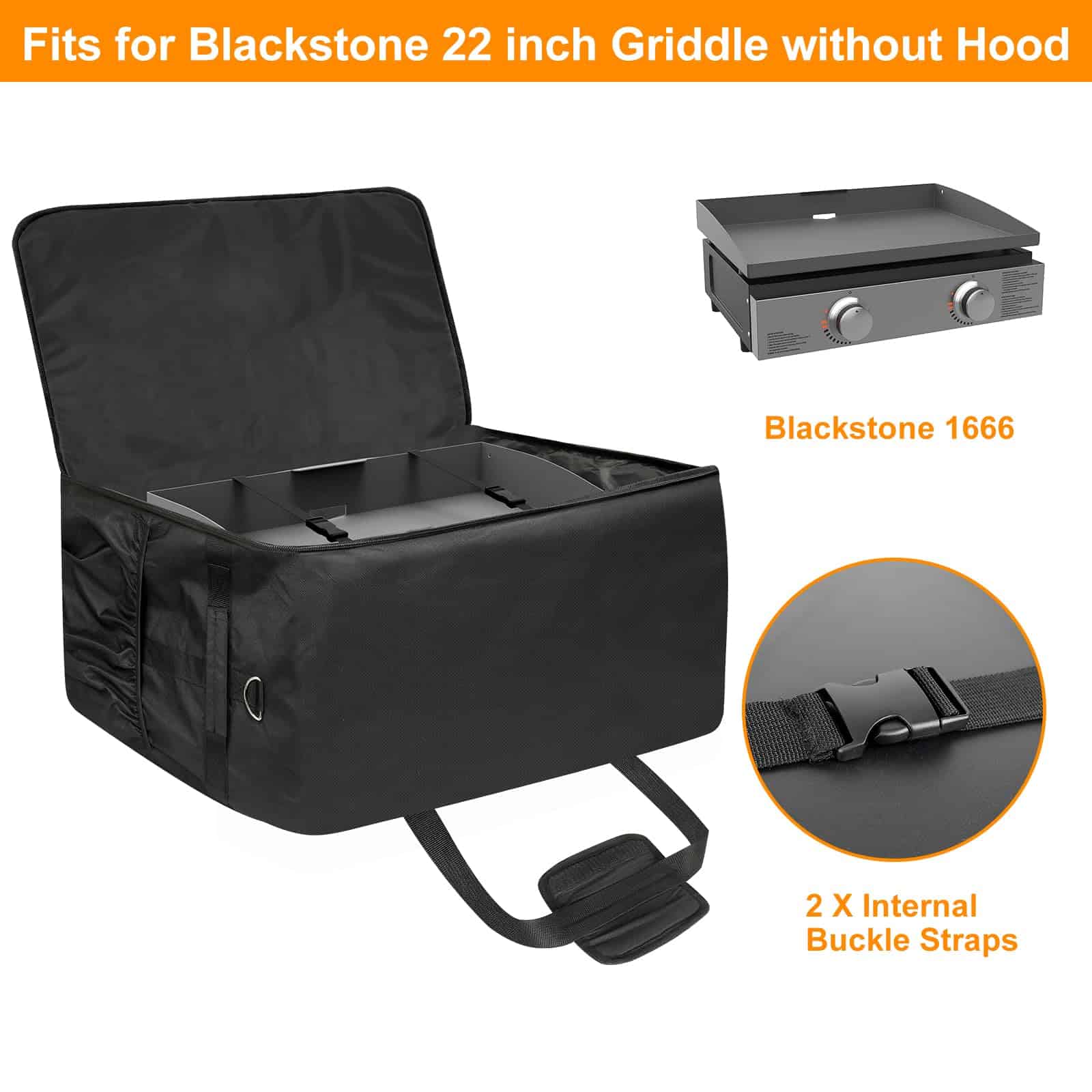 1. PERFECTA PARA: Diseñada específicamente para la plancha Blackstone de 22 pulgadas sin capucha, cremallera bidireccional se abre completamente para facilitar el acceso, hecha de tela de poliéster 600D resistente con recubrimiento de PVC, impermeable, resistente y resistente al color.