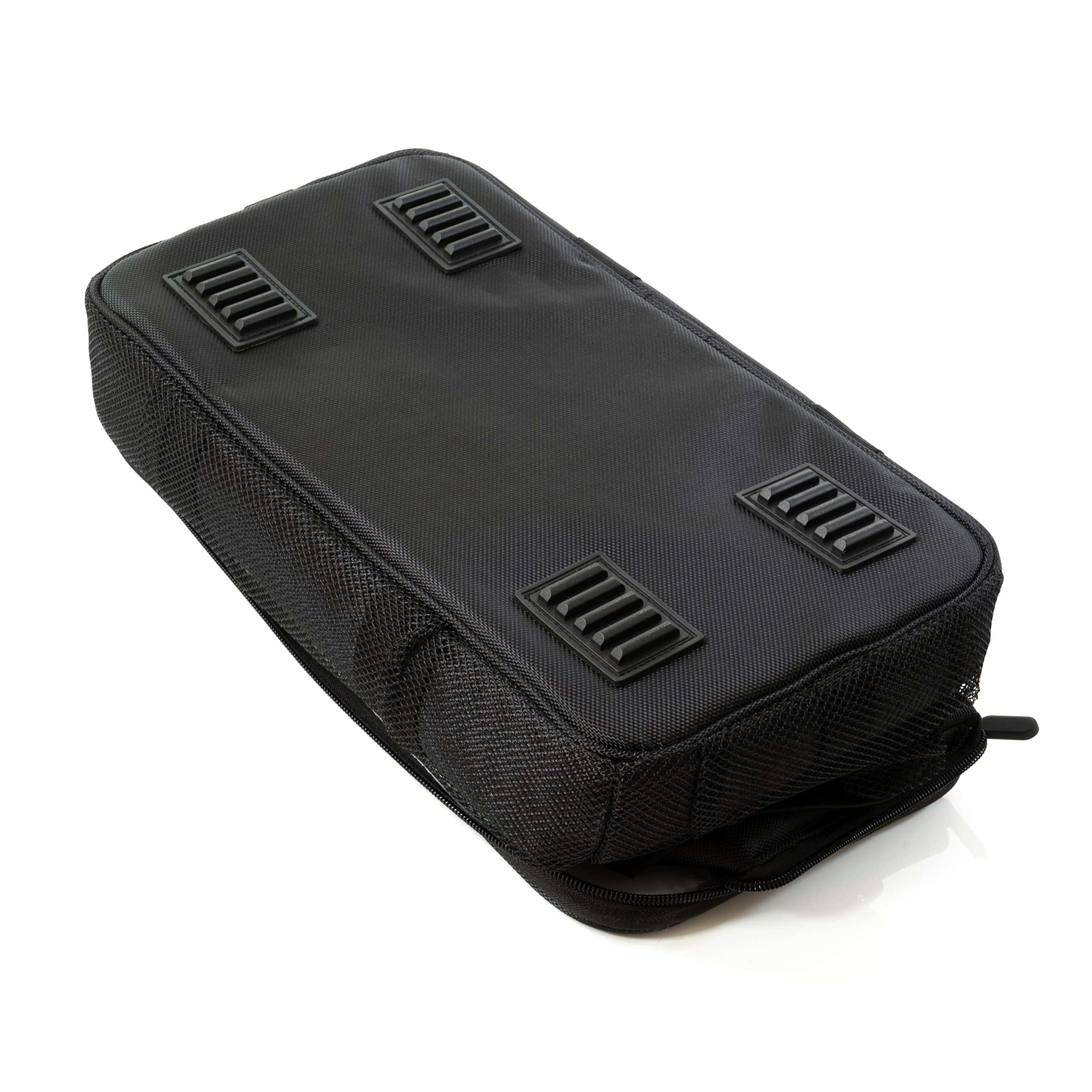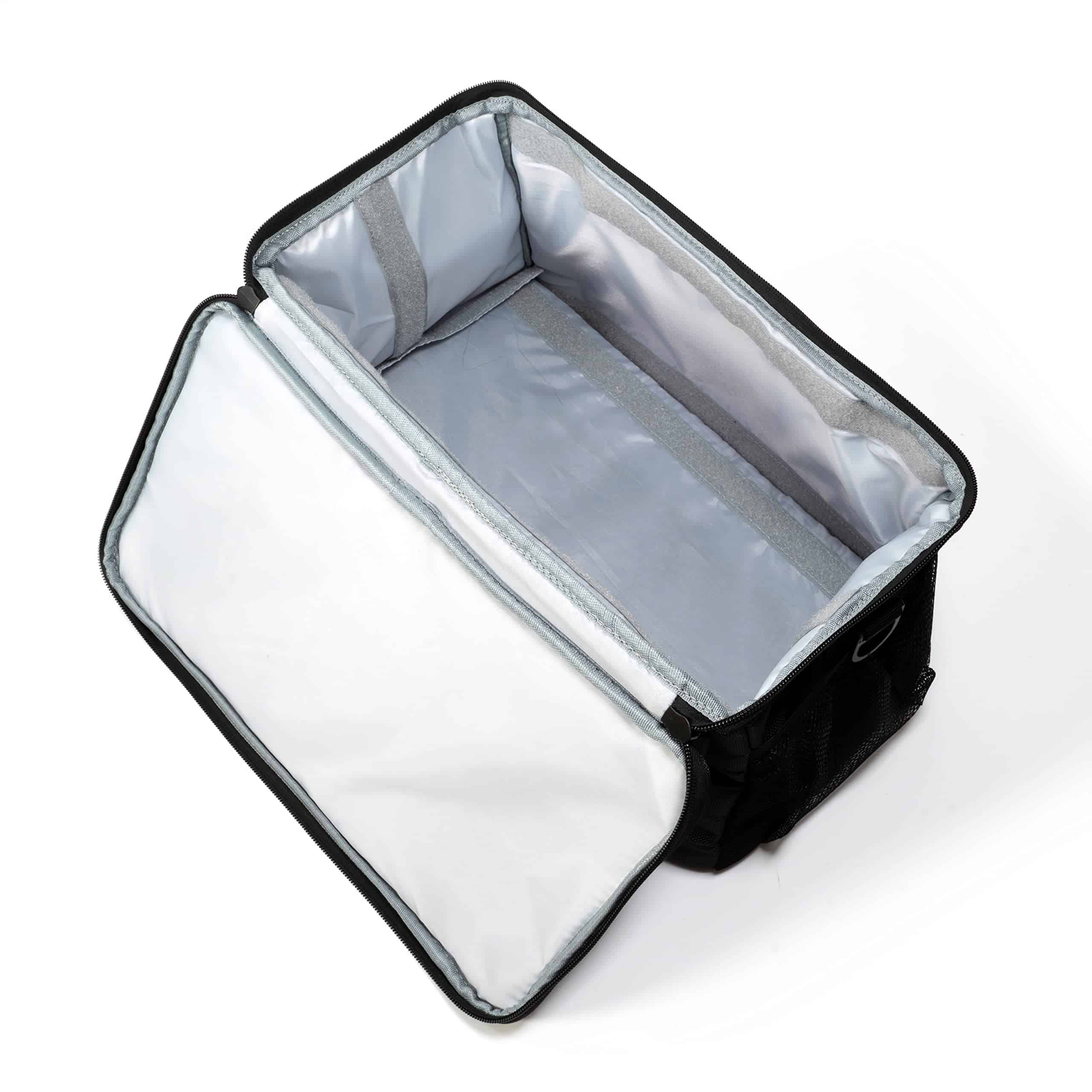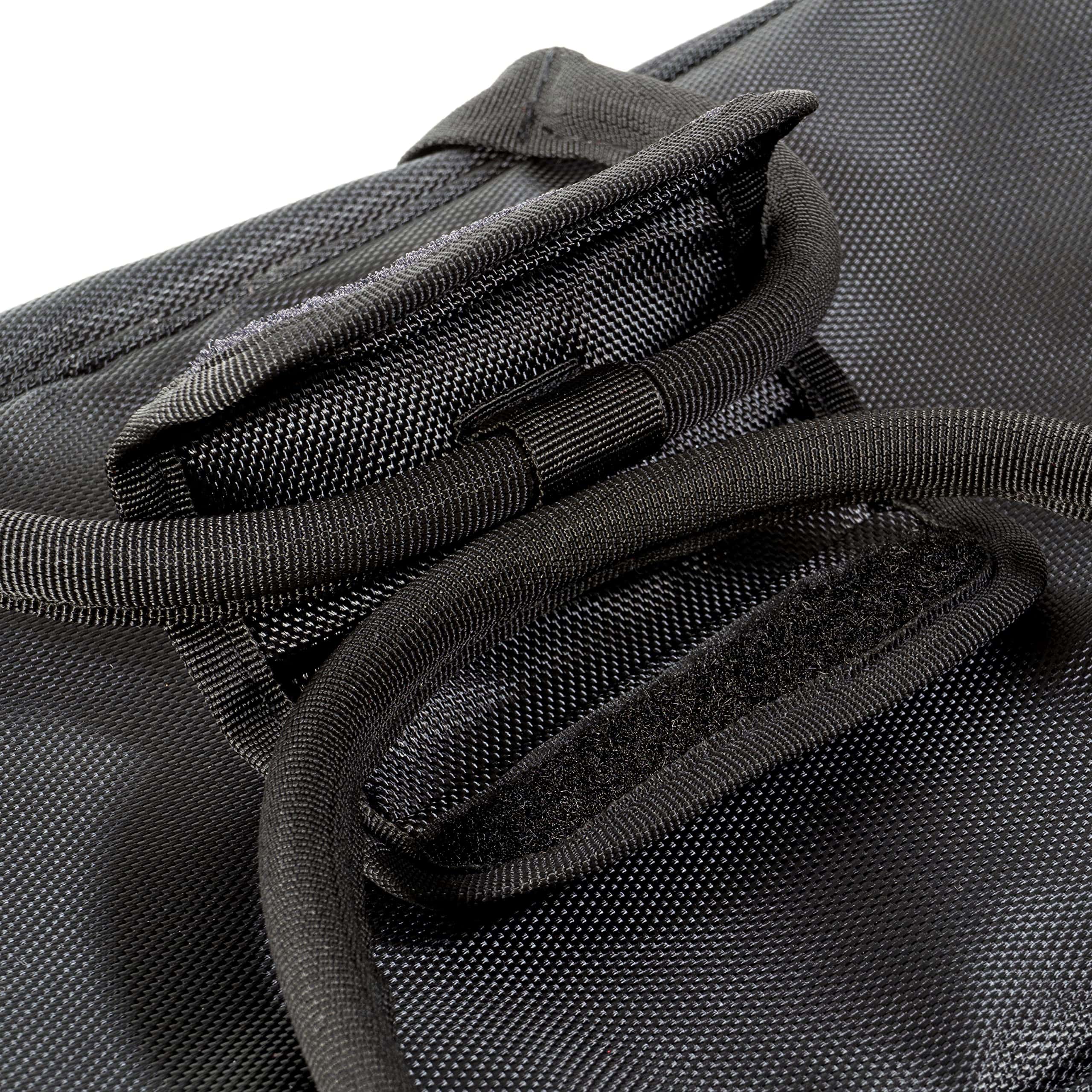 1. Hecho de poliéster resistente al agua con una placa base desmontable y agarres inferiores para mayor protección.