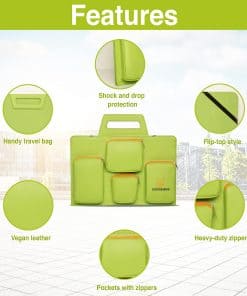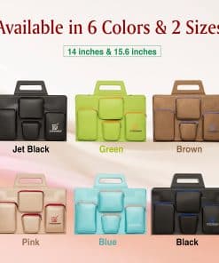Trabaja sobre la marcha Viaja más ligero con una bolsa inteligente que hace que desplazarse de un lugar a otro sea pan comido. Tu laptop de 14 pulgadas o 15.6 pulgadas cabrá en esta bolsa de laptop de cuero vegano. Con un elegante diseño de tapa abatible que te permite acceder rápidamente a tu computadora con un simple levantamiento, con bolsillos externos para tus accesorios de laptop y necesidades de viaje. Agarra rápidamente lo que necesitas con compartimentos organizativos con cremallera que te permiten encontrar tus cosas sin esfuerzo. Nómada en movimiento Fluye a través de la TSA sin problemas con todos tus dispositivos y elementos esenciales de viaje en una funda portátil para laptop. Permite que tus dispositivos sean escaneados fácilmente por la máquina de rayos X sin necesidad de sacarlos de la funda. Ya seas una persona de negocios, estudiante o profesional, esta funda para laptop te ahorrará un montón de problemas y tiempo cuando viajes. También cabe en cualquier equipaje y es adecuada como equipaje de mano. Práctica de usar en una biblioteca, escritorio de oficina, cafetería o avión. No te preocupes por los detalles pequeños Mantén tu dispositivo y documentos de viaje seguros con esta bolsa para laptop resistente al agua que protege contra derrames accidentales y arañazos. El amplio acolchado de espuma EVA mantendrá tus dispositivos protegidos de cualquier forma de presión, para que puedas pasar tu día con tranquilidad. Protege tu dispositivo hoy y luce elegante en movimiento con una Bolsa Domari – el futuro de las bolsas inteligentes. Viene en una variedad de colores y es el regalo perfecto: Negro Verde Rosa Marrón Azul Negro azabache