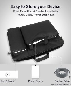 Esta Bolsa de Viaje Starlink Gen 3 para Estuche de Viaje Starlink Gen 3 es una bolsa de almacenamiento portátil diseñada especialmente para el Receptor Starlink Gen 3, el bolsillo principal se utiliza para almacenar Starlink, el bolsillo lateral pequeño está diseñado para el Enrutador Gen 3, el bolsillo lateral grande puede contener el Cable Starlink de 50 pies y otros accesorios, almacenamiento separado, para que pueda tener el kit Starlink en orden, esta bolsa utiliza tejido doble, la capa exterior está diseñada para llevarla en la mano y colgarla en el hombro, para que pueda viajar y acampar al aire libre con el kit Starlink de manera más fácil y portátil. La bolsa está hecha de tela de doble capa, la capa exterior es tela de oxford 600D, que es más resistente al desgaste e impermeable, y la capa intermedia tiene algodón perlado que puede prevenir eficazmente el impacto y golpe de su conjunto Starlink 3, y proteger mejor su Starlink. (Diseño para llevar a mano o colgar al hombro, para que viaje acampando al aire libre llevando el conjunto de la generación 3 de Star con más facilidad y portabilidad)