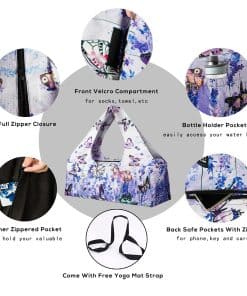 Diseñada específicamente para transportar tapetes de yoga en una forma fácil y cómoda, la bolsa cuenta con correas dobles anchas para los hombros que evitan cualquier incomodidad y te permiten llevarla sin problemas a donde sea que vayas. Las costuras finas a mano y los diseños impresos añaden color y estilo a la bolsa, haciéndola vibrante y llamativa. La bolsa de yoga BagYG es versátil y puede utilizarse como estuche de viaje, bolsa deportiva, bolsa de compras, bolsa de playa e incluso como bolsa de pañales. Es perfecta para viajar, hacer yoga, Pilates, ejercicio, bailar, jugar baloncesto, tenis y muchas otras actividades al aire libre. ¡Además, es un regalo ideal para cualquier amante del yoga!